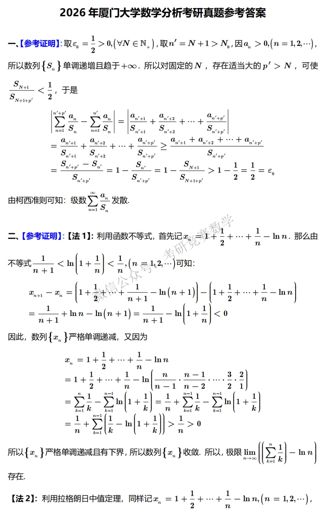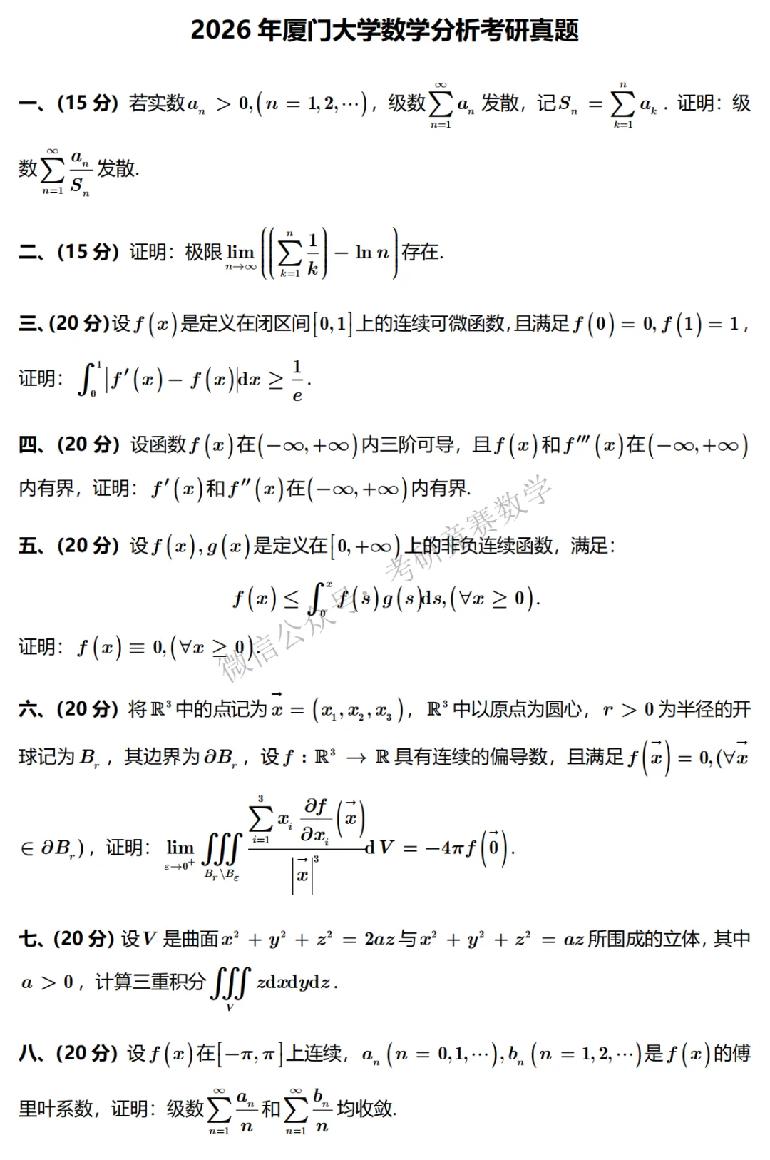 当前位置:首页>考研真题>2026年厦门大学数学分析考研真题及详细参考解答