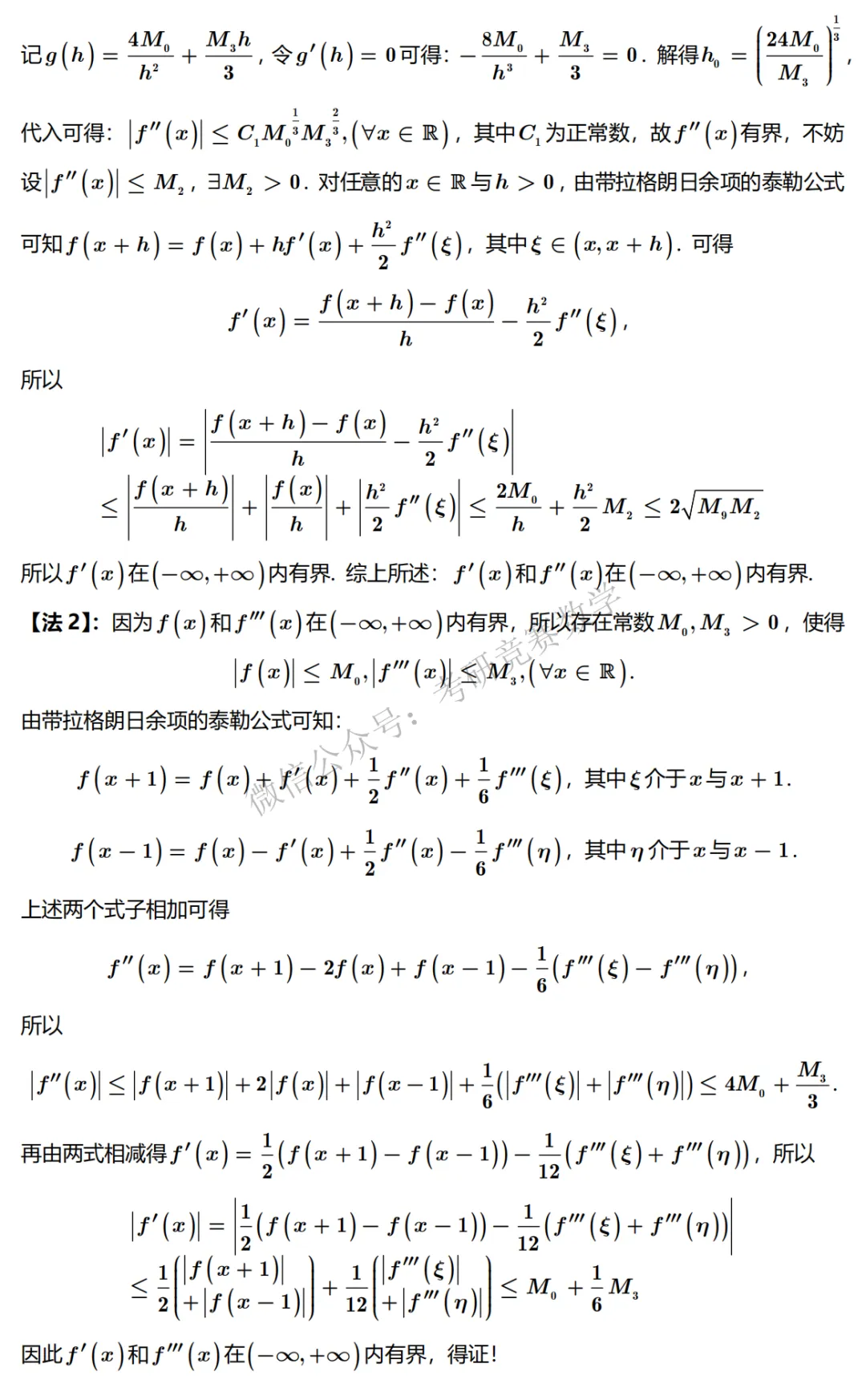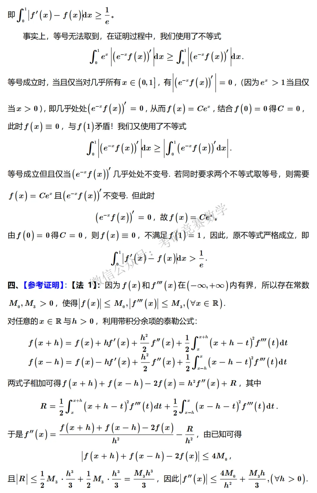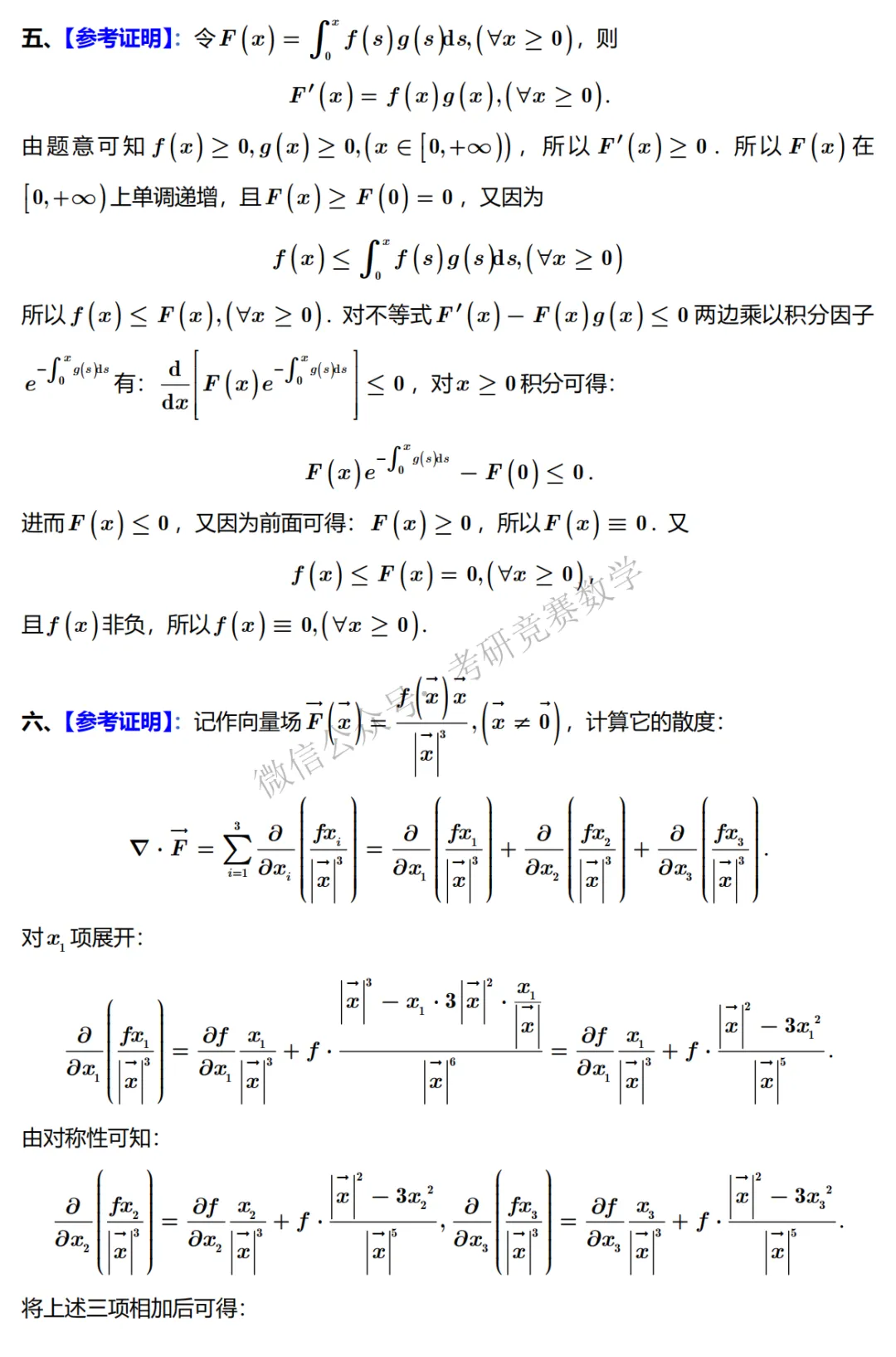 【注1】试题与参考解析由热心学友萱宝儿整理分享,试题来源于网络分享,相关题目可能略有改动内容是否完整对应相应年份的题目,希望知晓的学友能够进行核验!试题和解答分享仅供学习交流,如题目或解答来源原出处不允许分享,请联系删除或修改,谢谢!建议(一定)自己在草稿纸上动手做完以后再参考下面给出的参考答案更多综合、提高典题型及详细参考解答(多解)参看高数、数分综合提高练习册,点击推文链接:高等数学、数学分析综合提高练习册:竞赛、考研、课程学习,有这一套就够了 了解详情!