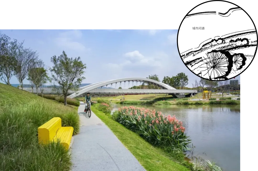 滨水步道通过构建多层次、立体化的步行系统,将水岸空间编织成一个充满活力的社区生活纽带。它打破了单一的路径模式,在不同高差与临水距离中营造移步换景的亲水体验,既满足人们漫步、观景、休憩等多元的亲水需求,也激发更多社区活动的自然发生。