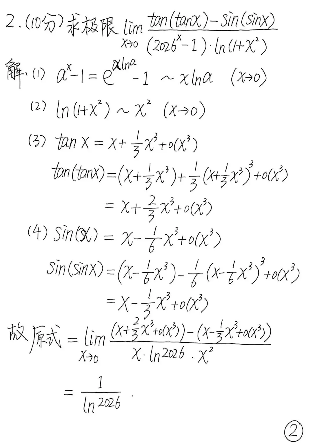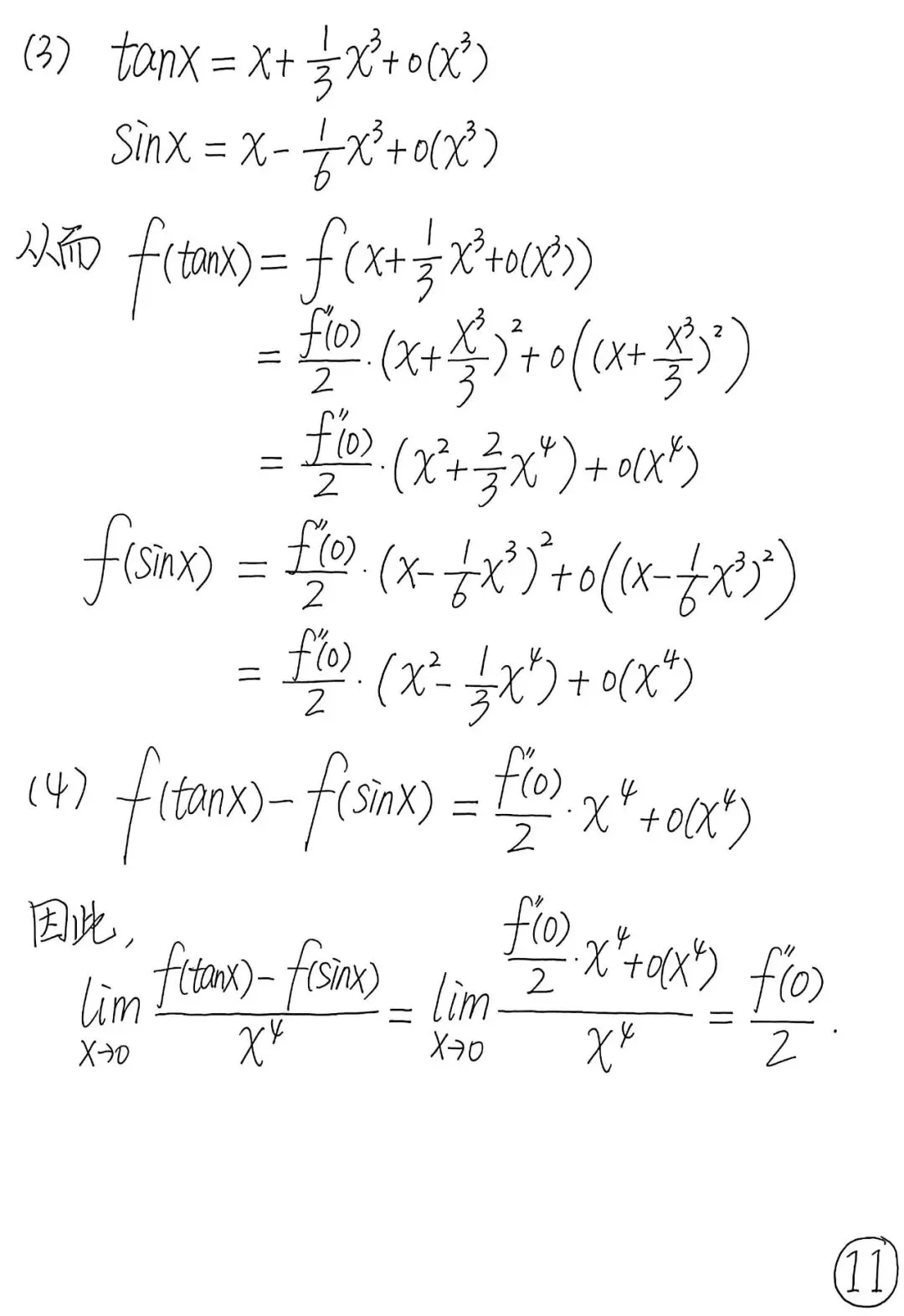 利用 Taylor 展开计算极限,注意需展开到 4 次方