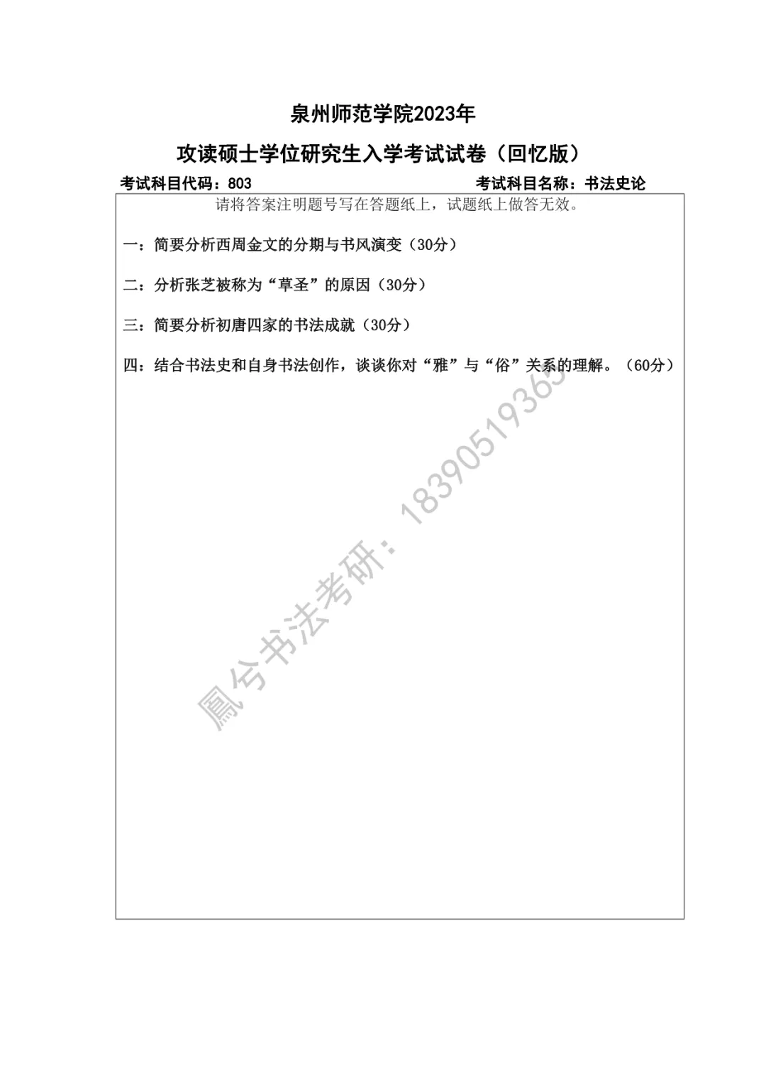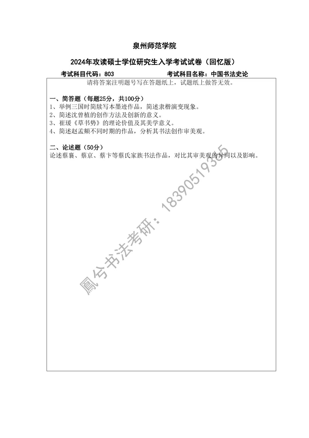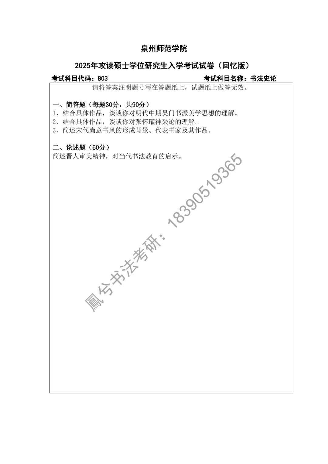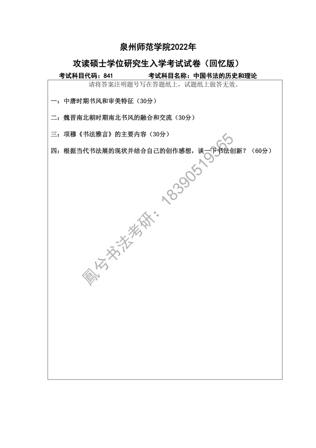 27院校分析 | 泉州师范学院书法考研招考信息与真题分析