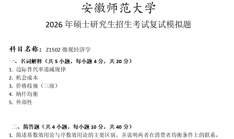 >安徽师范大学Z1502微观经济学考研复试真题模拟