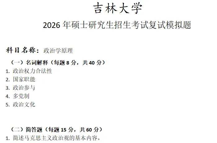 吉林大学政治学原理考研复试真题模拟含答案