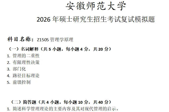 >安徽师范大学Z1505管理学原理考研复试真题模拟
