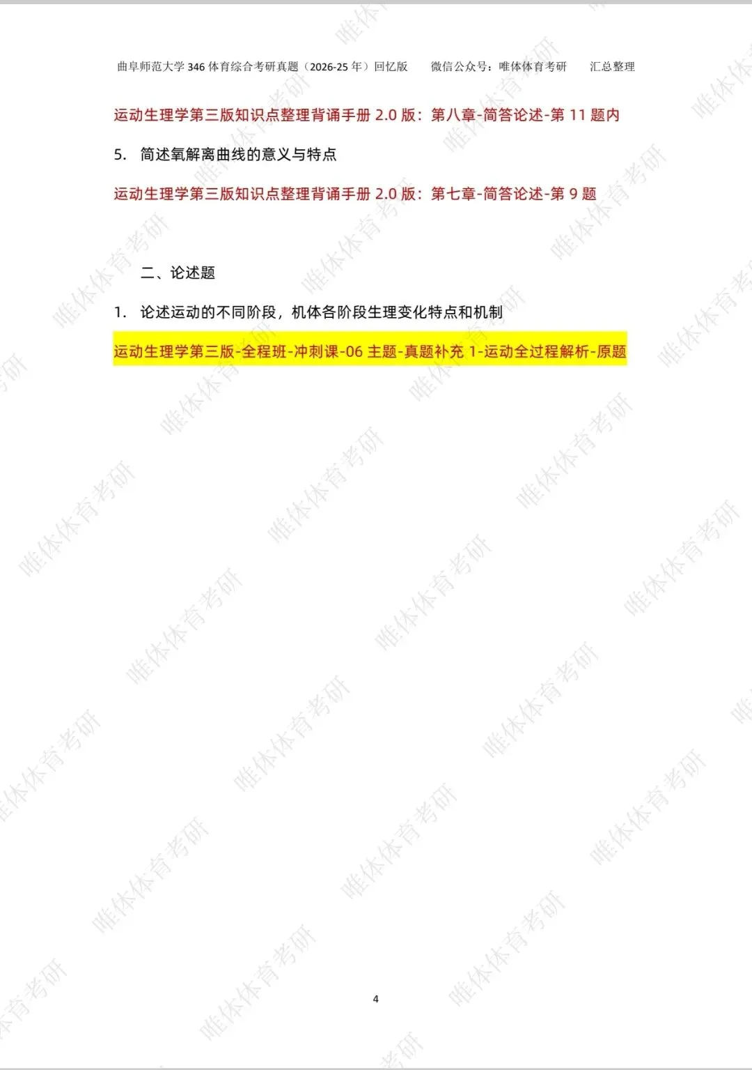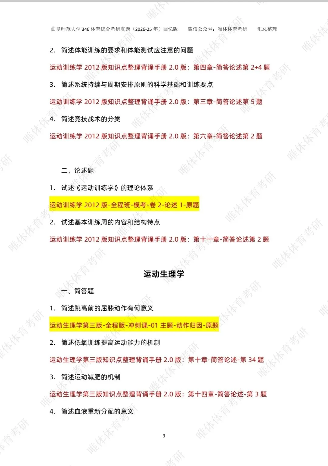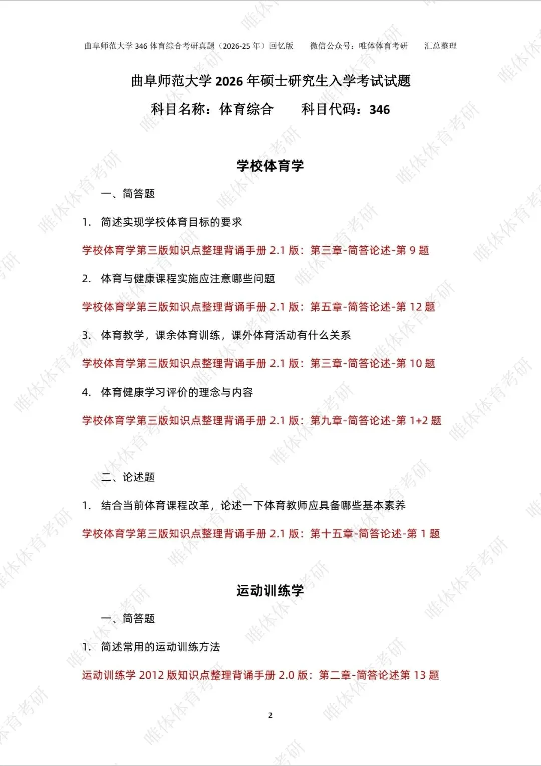 【体育考研】26考研曲阜师范大学346体育综合考研真题!