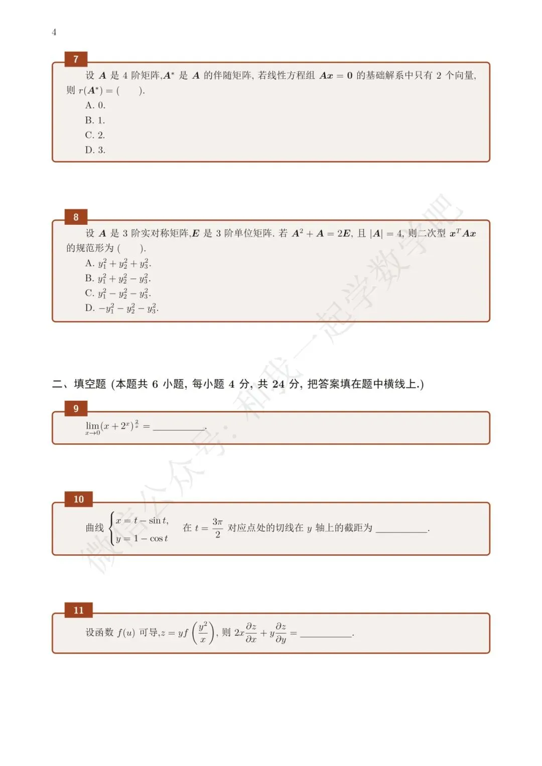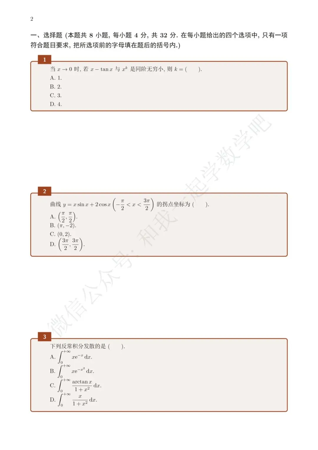 为了方便各位小伙伴们刷题,我重新排版了19年数二的真题,在每道题下面都增加了空白,方便大家写答案,记录相关知识点。