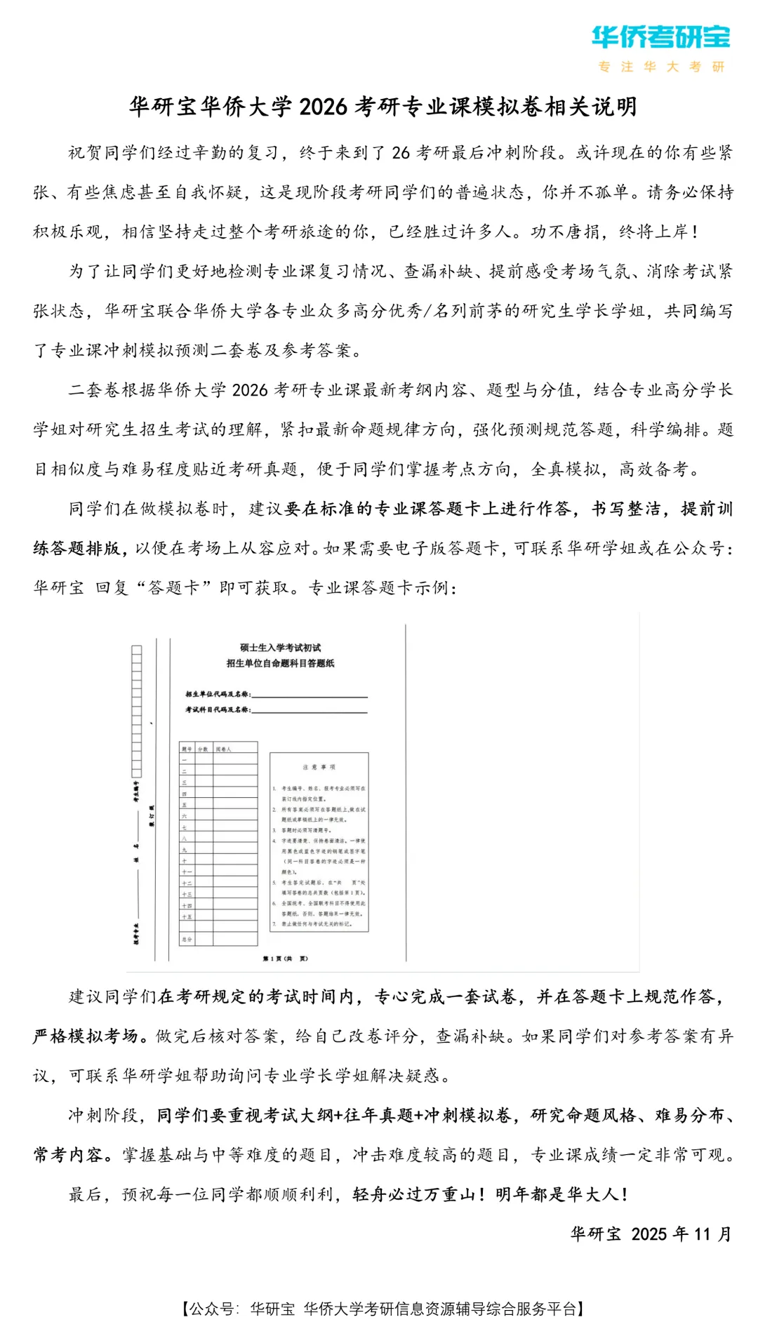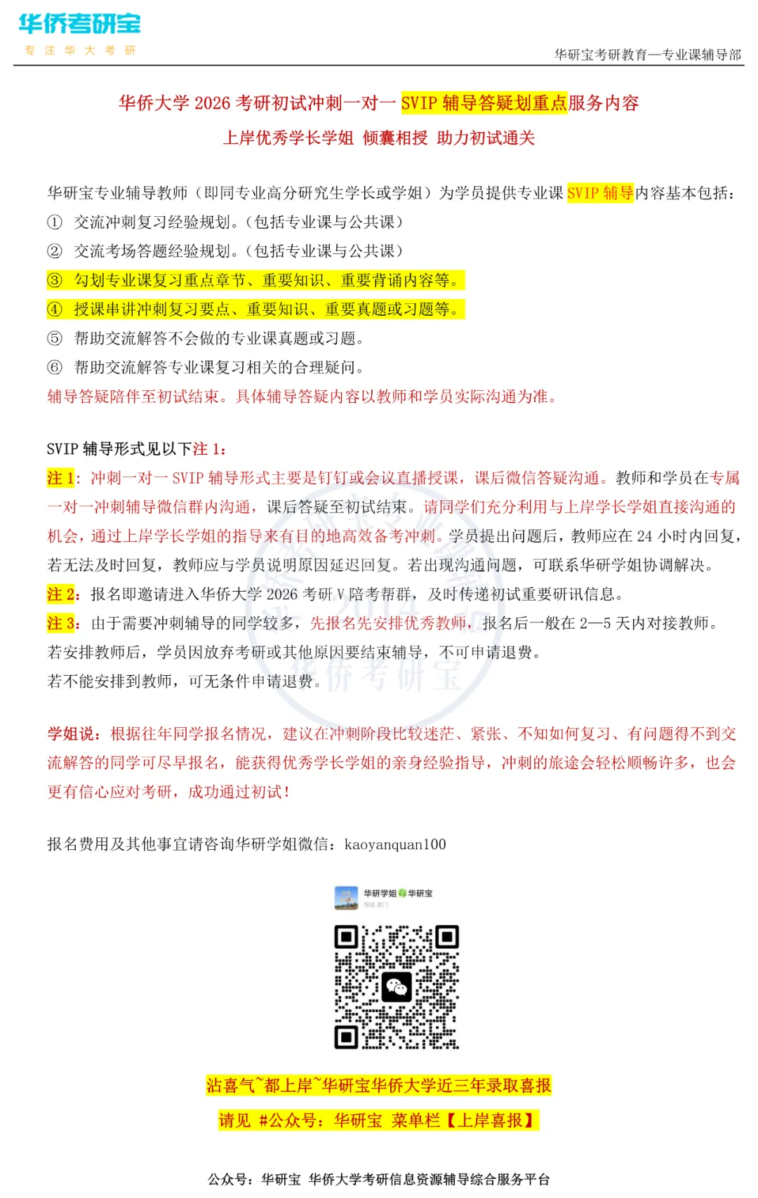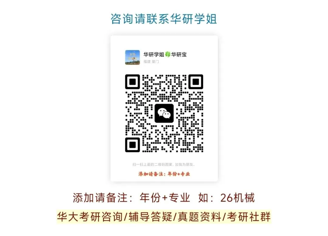 咨询请联系华研学姐 添加请备注:年份+专业 如:26机械