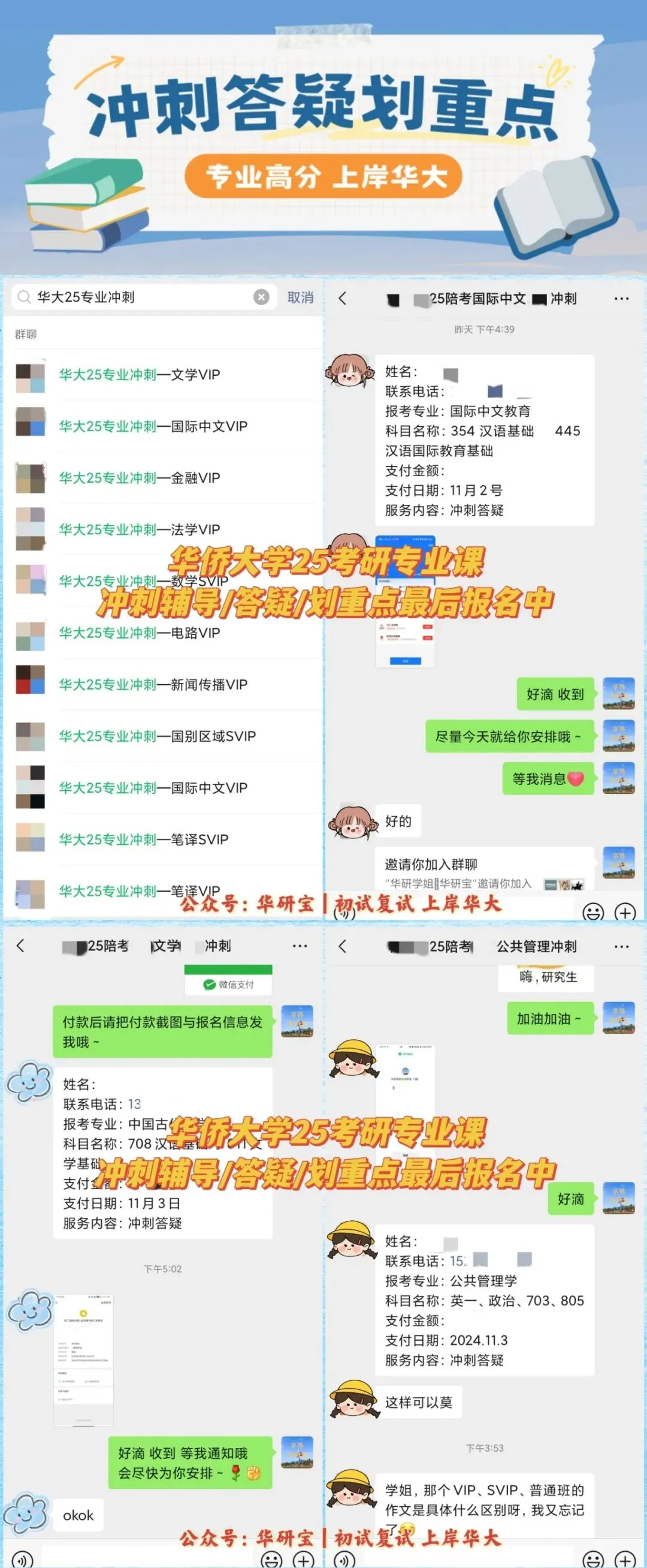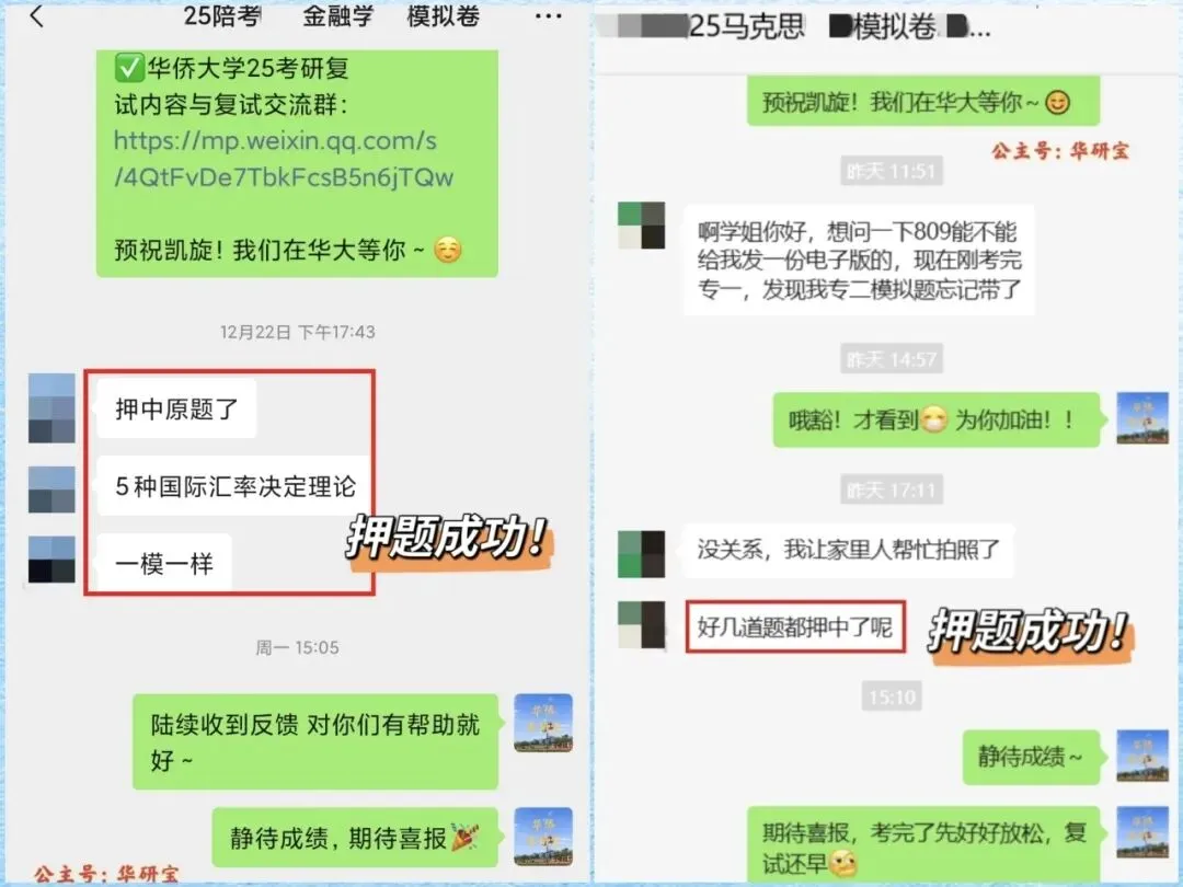 华研宝华侨大学近年考研同学喜报(部分)
