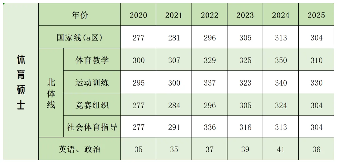 在学硕与专硕之间进行选择时,要综合衡量自身文化成绩和技术水平;体育教育训练学历年复试分数线相对不够稳定,尤其是19年的367分与20年的277分之间的巨大变化。所以选择体育教育训练学专业在文化课上要有十足的把握才行;此外报考学硕体育教育训练学,为了应对专业课一些不可控因素,个人政治和英语公共课也一定要足够好!