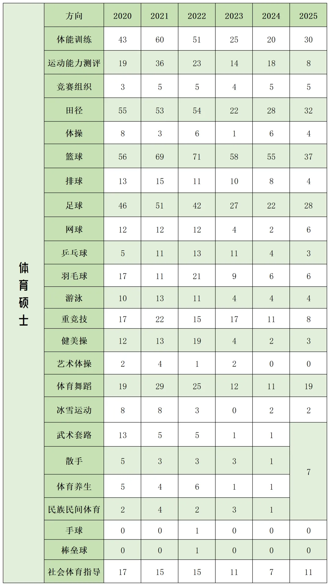 ——各方向录取人数