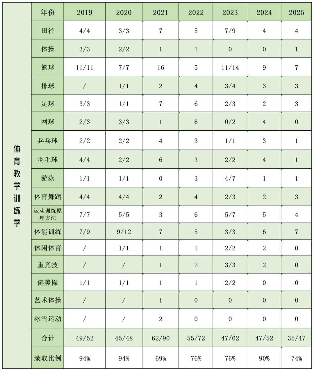 本篇推文给大家带来的是612运动人体科学、346体育硕士、613体育教育训练学和民族传统体育学专业的历年分数线和录取比例!