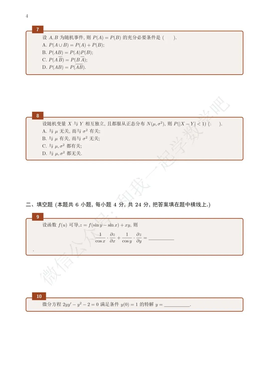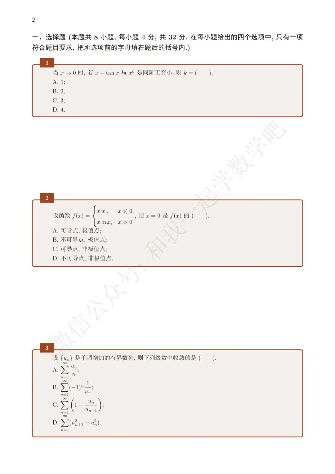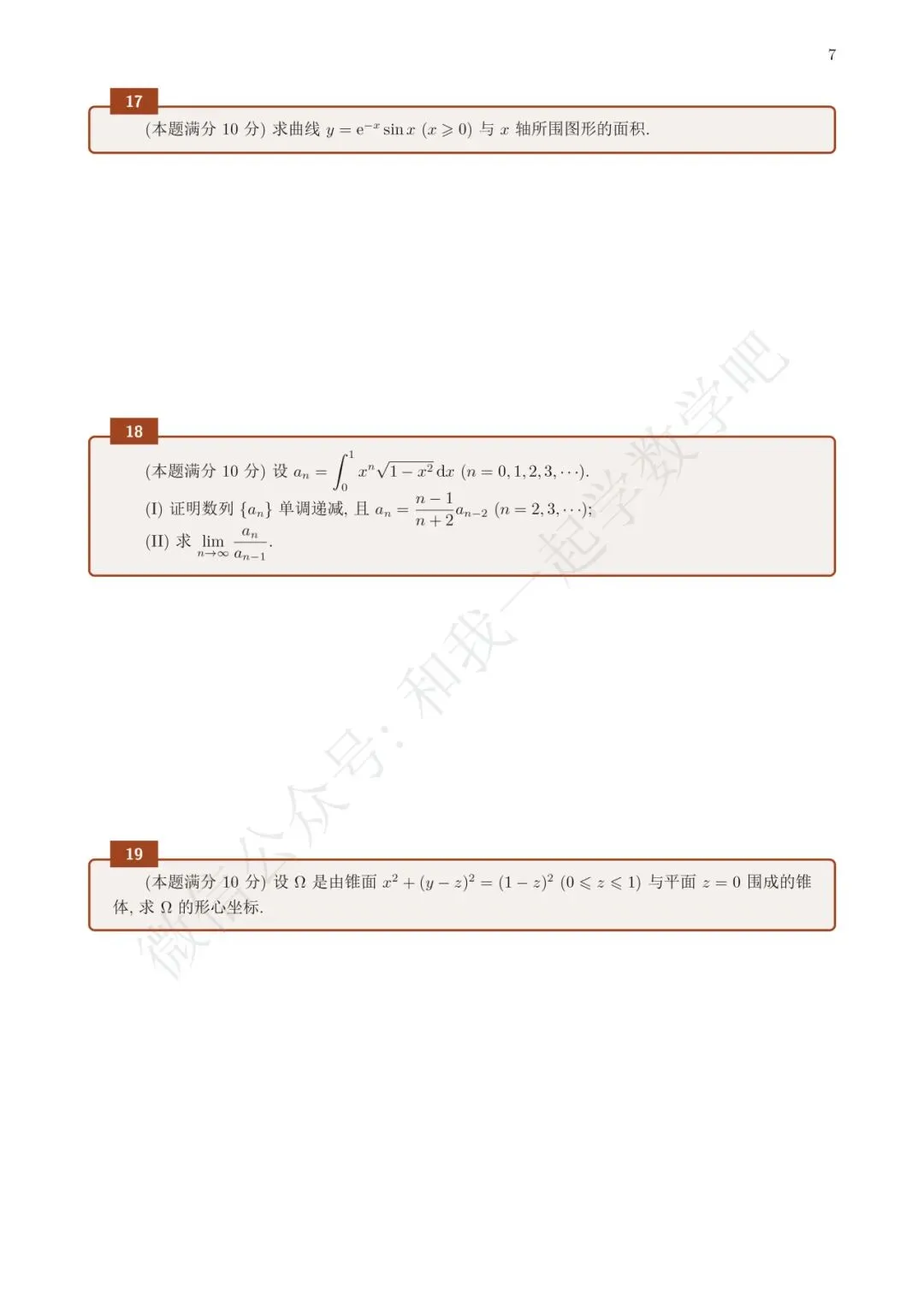 为了方便各位小伙伴们刷题,我重新排版了19年数一的真题,在每道题下面都增加了空白,方便大家写答案,记录相关知识点。