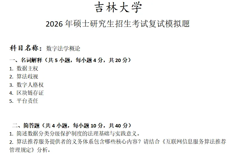 吉林大学数字法学概论考研复试真题模拟含答案