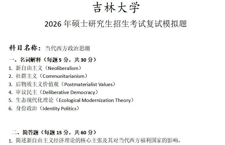 吉林大学当代西方政治思潮考研复试真题模拟含答案