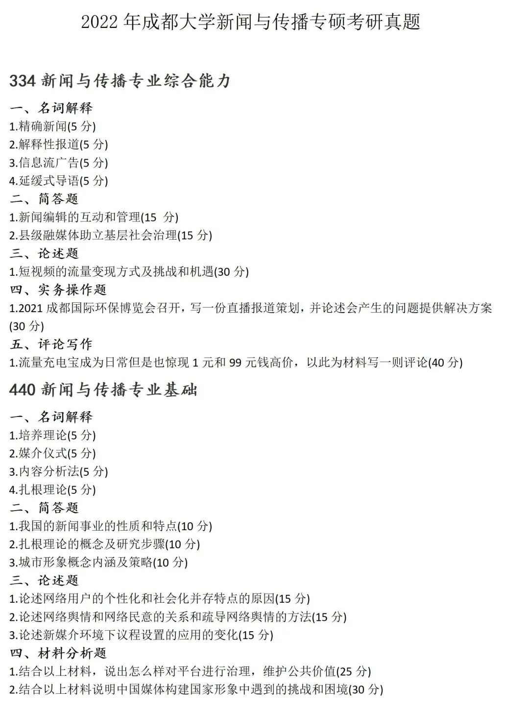 成都大学新闻与传播考研真题2022