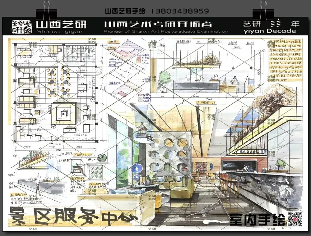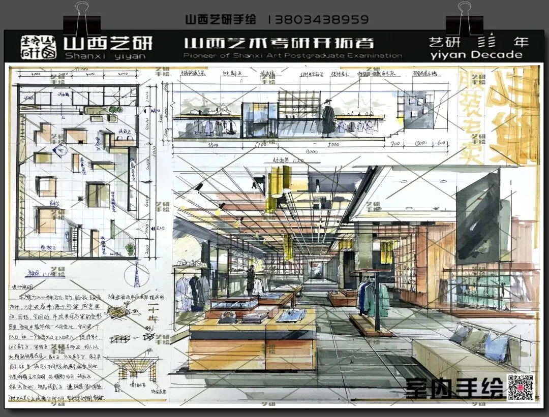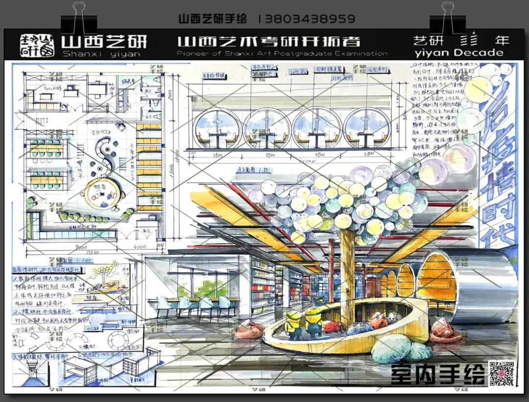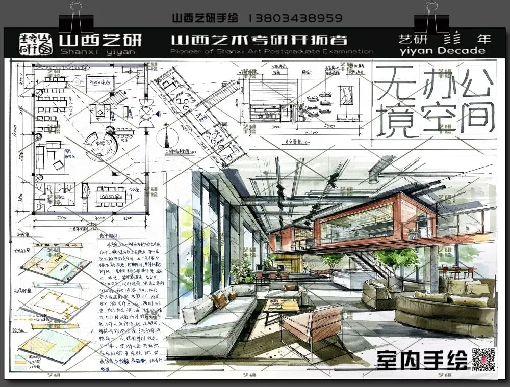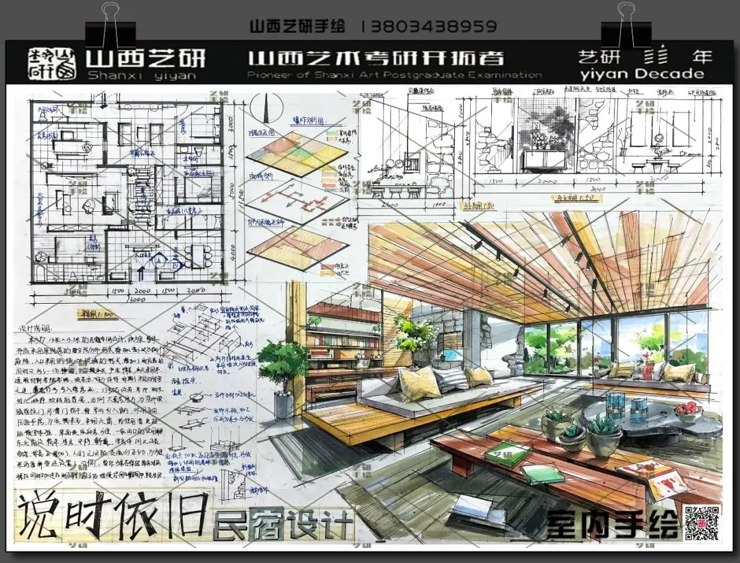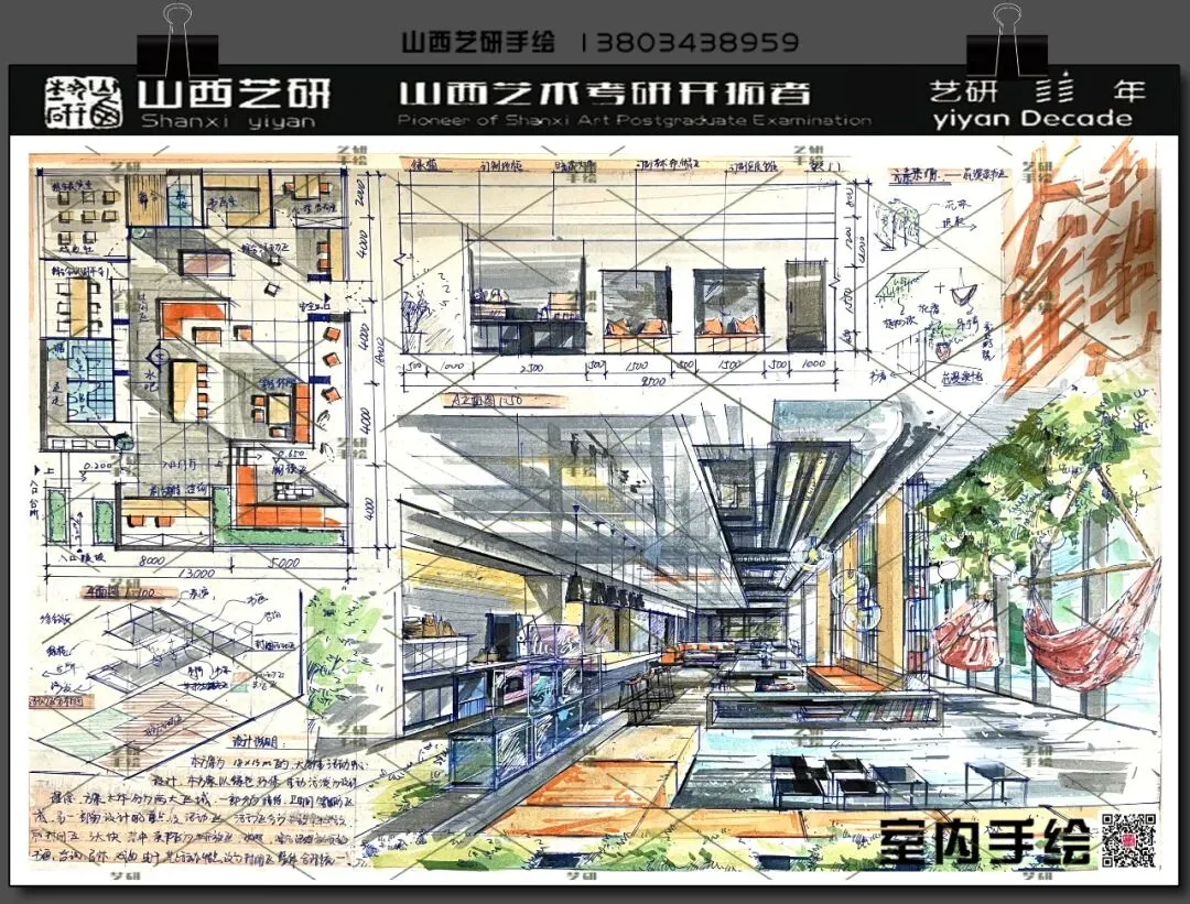 山西大学室内考研手绘快题提分必看!艺研定制班高分范画新鲜出炉!
