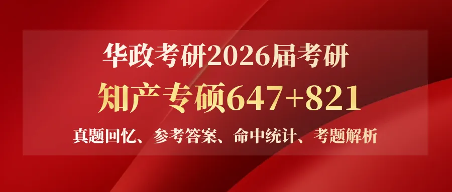 以上就是全部的知产专硕647和821的2026届真题解析和质量统计,如上分析,仅为编者个人观点,主要作为答题技巧参考使用,实际批卷当以华政官方为准。