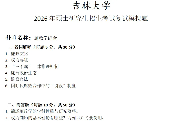 吉林大学廉政学综合考研复试真题模拟含答案