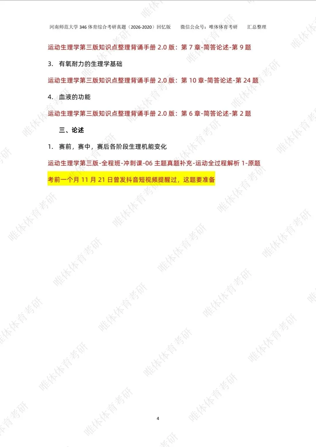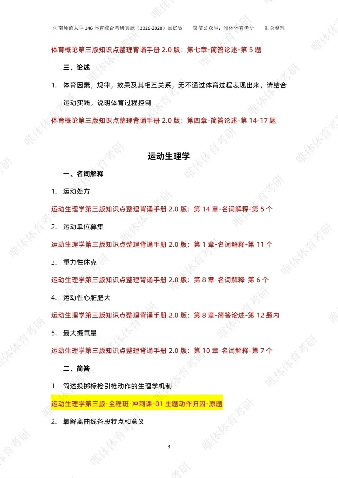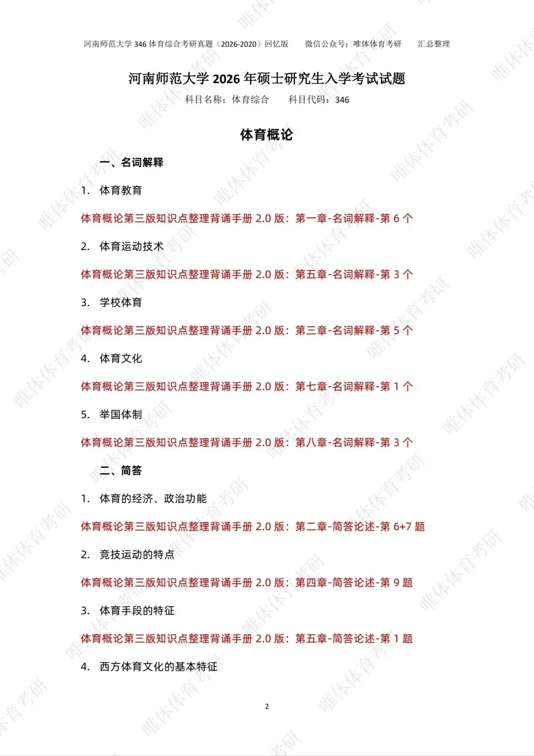 >【体育考研】26考研河南师范大学346体育综合考研真题!