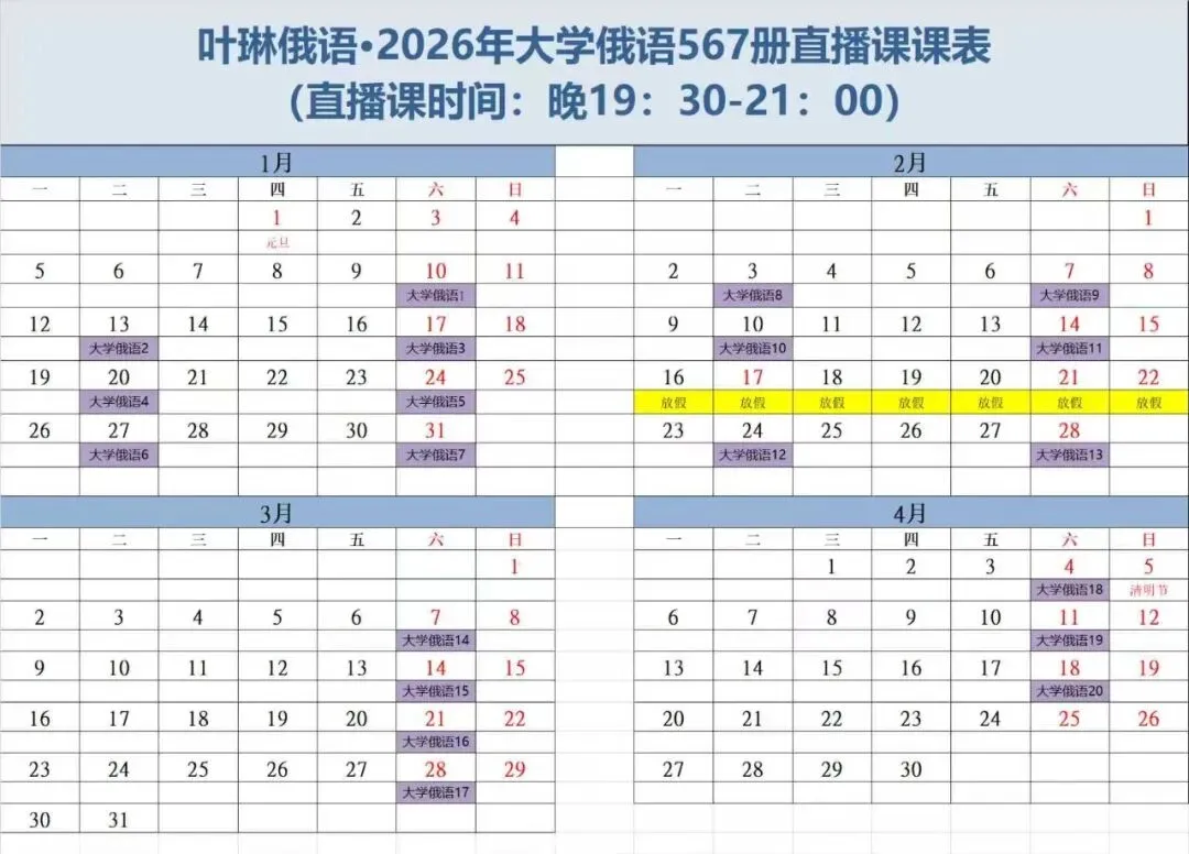 回复“大学俄语“即可获取直播课详情