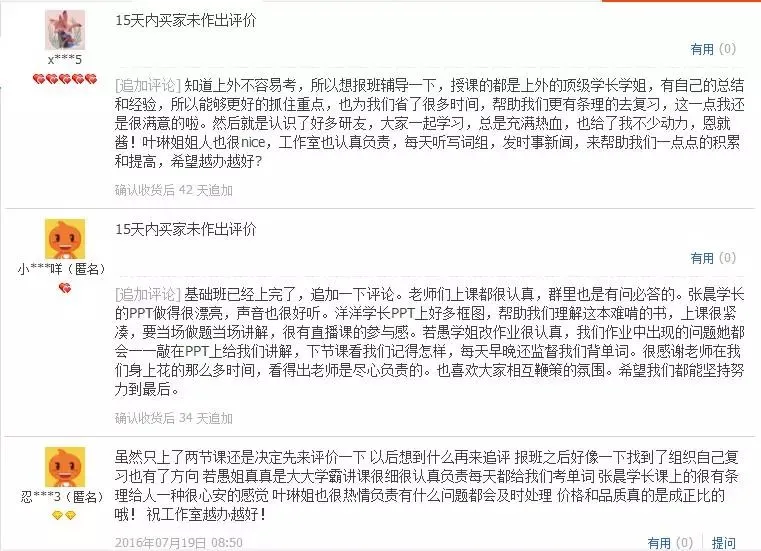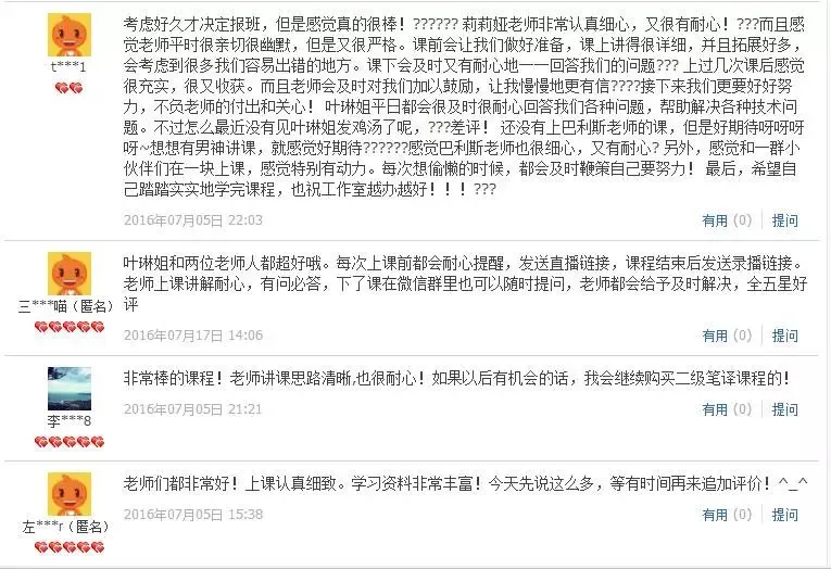 历年学员评价