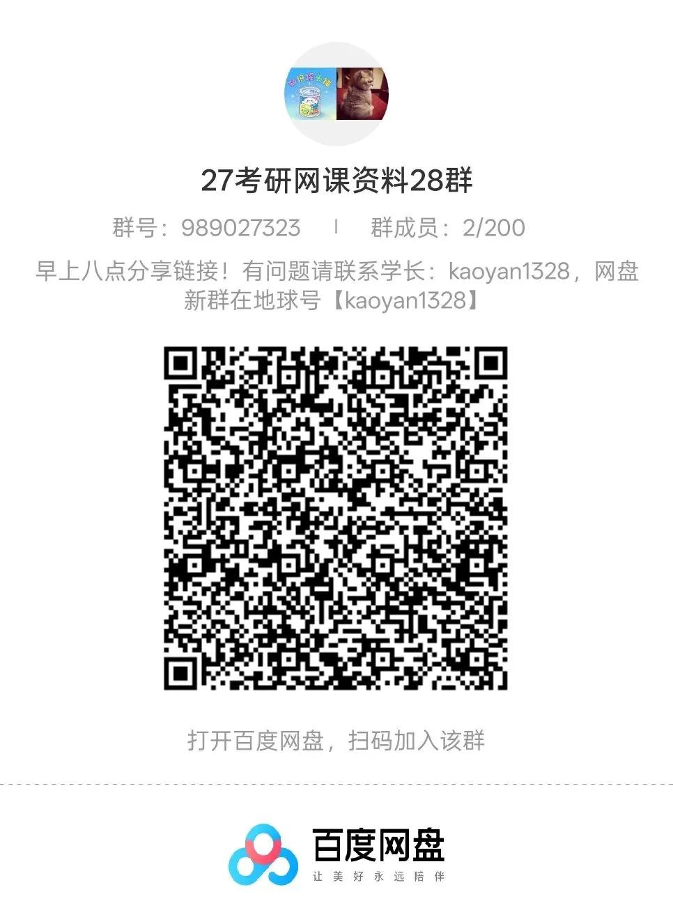 当前位置:首页>专业课资料>27考研电子资料+视频网课资源共享群【百度网盘+夸克网盘】2.2已同步更新