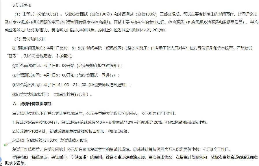 1. 复试成绩满分按100分计,复试成绩+笔试成绩*40%+专业面试*40% +外语测试20%,各项成绩均保留2位小数。