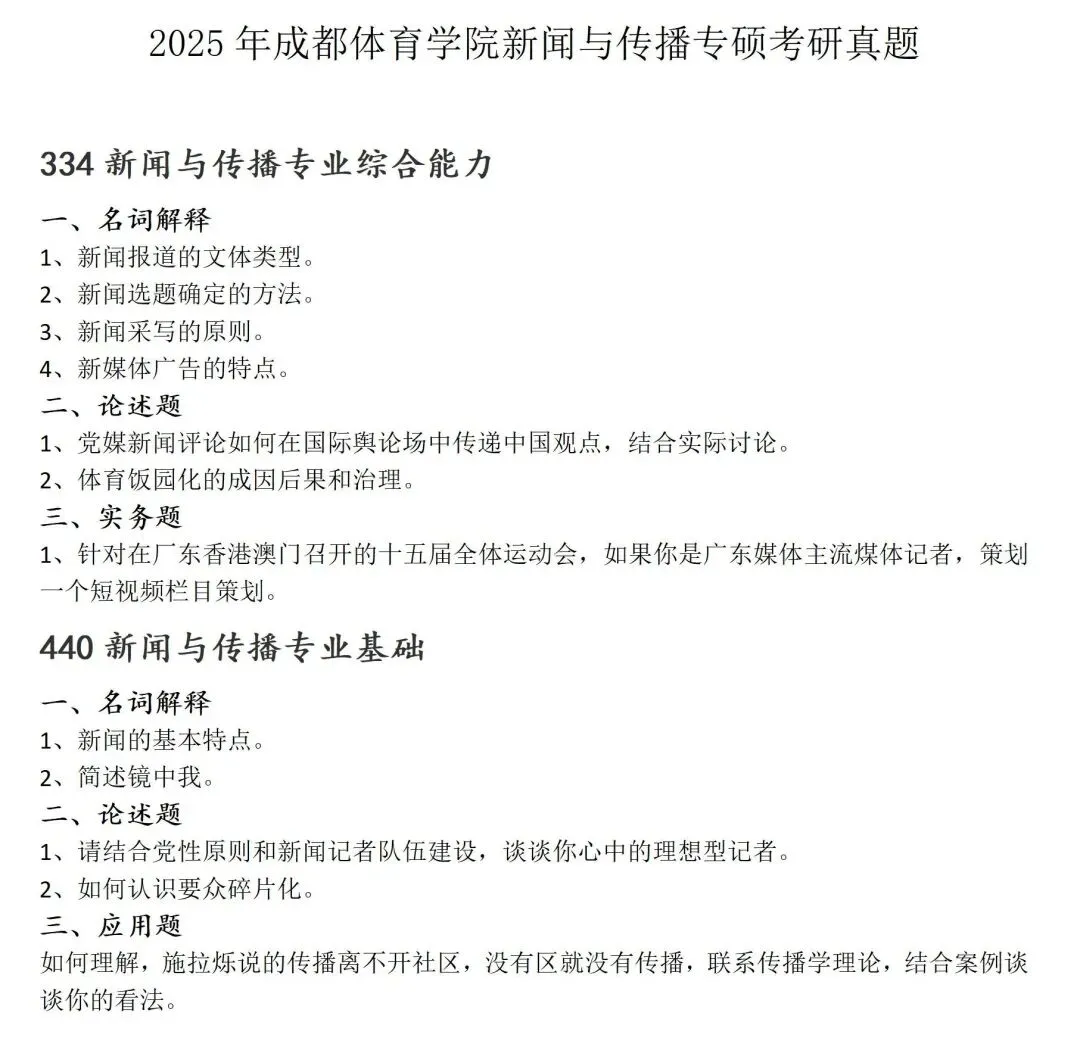 成都体育学院新闻与传播考研真题2020-2025历年