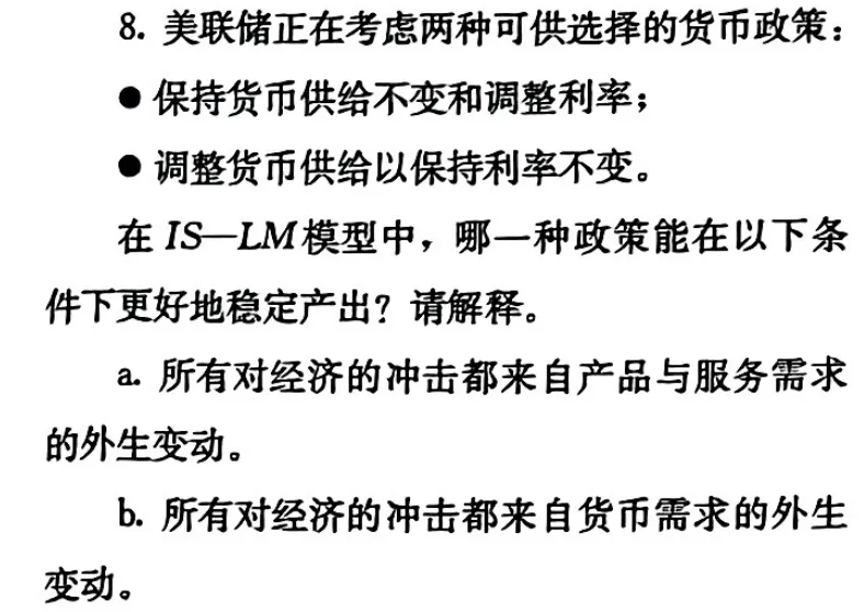 考点:宏观四讲第一讲封闭经济模型。货币政策变量常用的有两个,一个是货币供给量,如果控制货币供给量不变,LM就是常规的右上方倾斜。一个是利率,如果控制利率(调整货币供给)不变,LM就是水平的。考北大汇丰西经的同学如果题目没有说就默认保持利率不变,因为这是布兰查德宏观经济学课本上模型的假设,见下图。