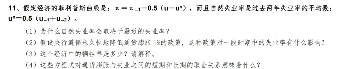 考点:宏观四讲第一讲总供给曲线和菲利普斯曲线的关系,一加、一减、一代入。曼昆宏观经济学课本原话。 北大软微金融科技2022年考研真题