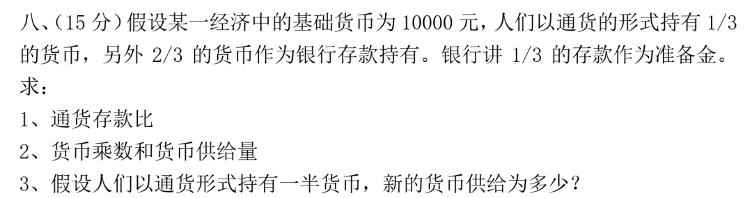 考点:宏观四讲第一讲货币供给理论部分。曼昆宏观经济学也有很多这种课后题。货币乘数和存款货币扩张倍数这个视频在B站还发布过试听。链接:https://b23.tv/ctbVGwE 曼昆宏观经济学第11版第4章课后题