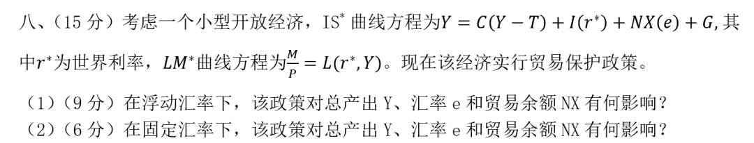 考点:宏观四讲第一讲开放经济模型之小型开放经济。曼昆宏观经济学第11版第14章课后题。人大834经济学2024年也考过。 曼昆宏观经济学第11版第14章课后题
