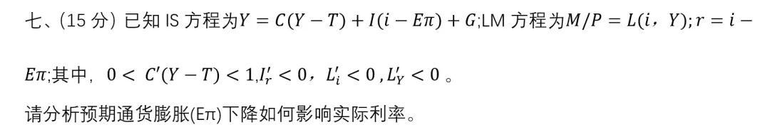 考点:宏观四讲第四讲。曼昆宏观经济学例题,人大802经济学2016年和2024年也考过。 北大软微金融科技2020年考研真题