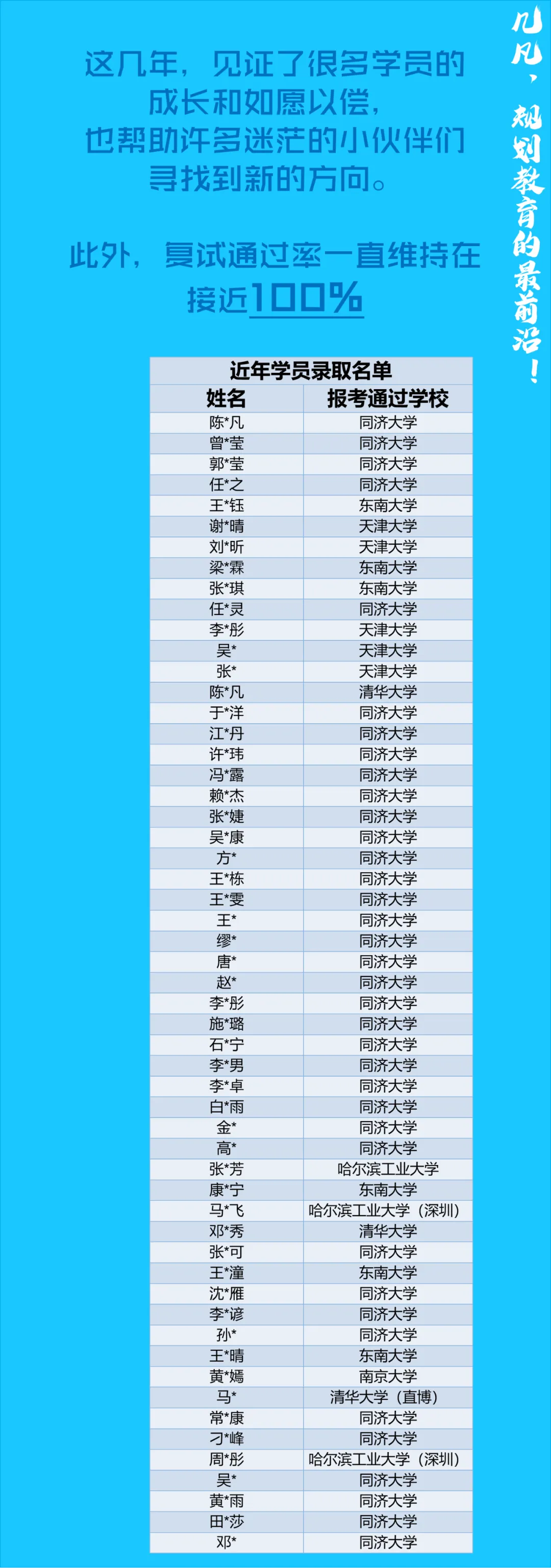 近年几凡儿规划考研录取情况统计