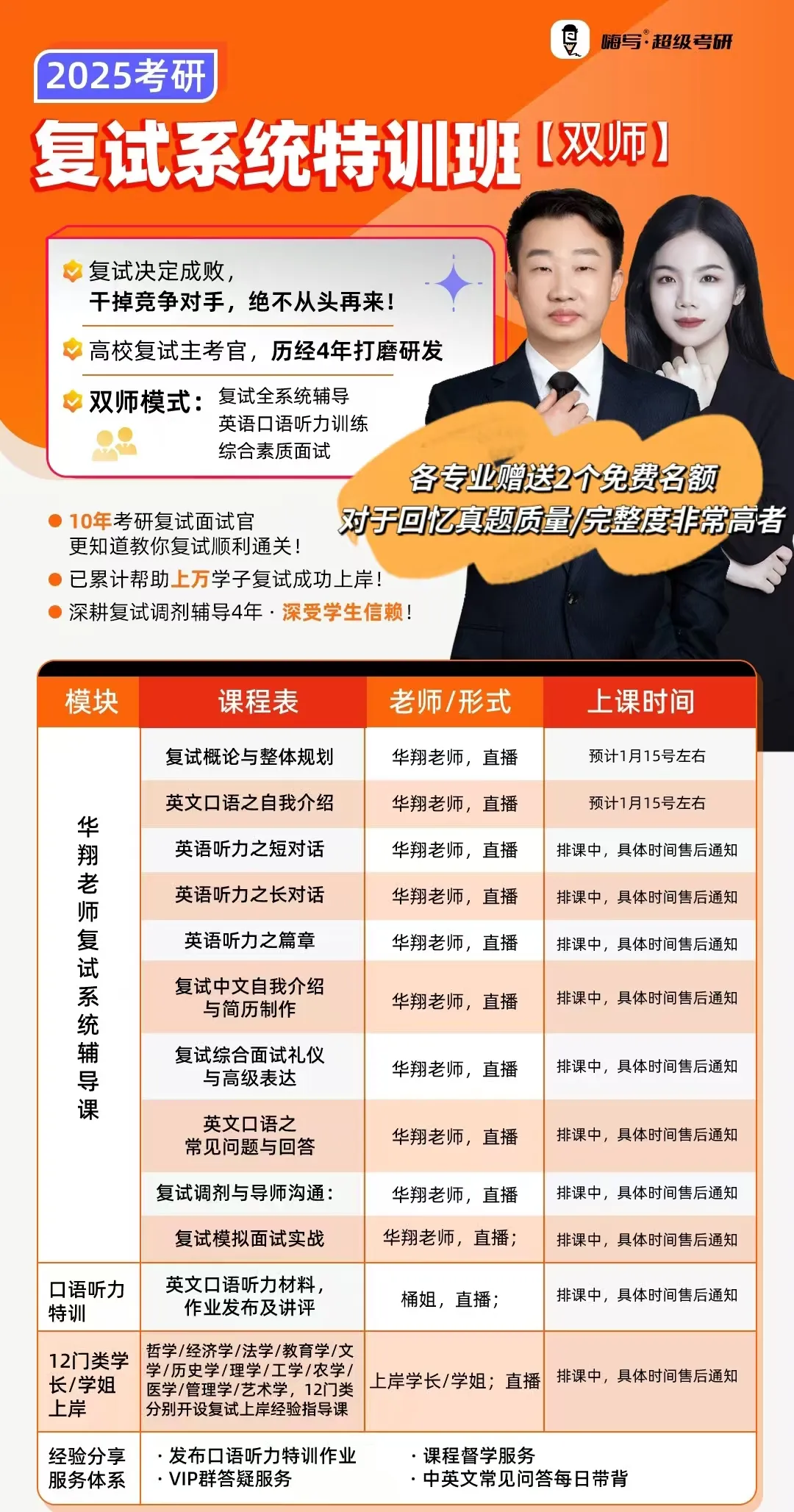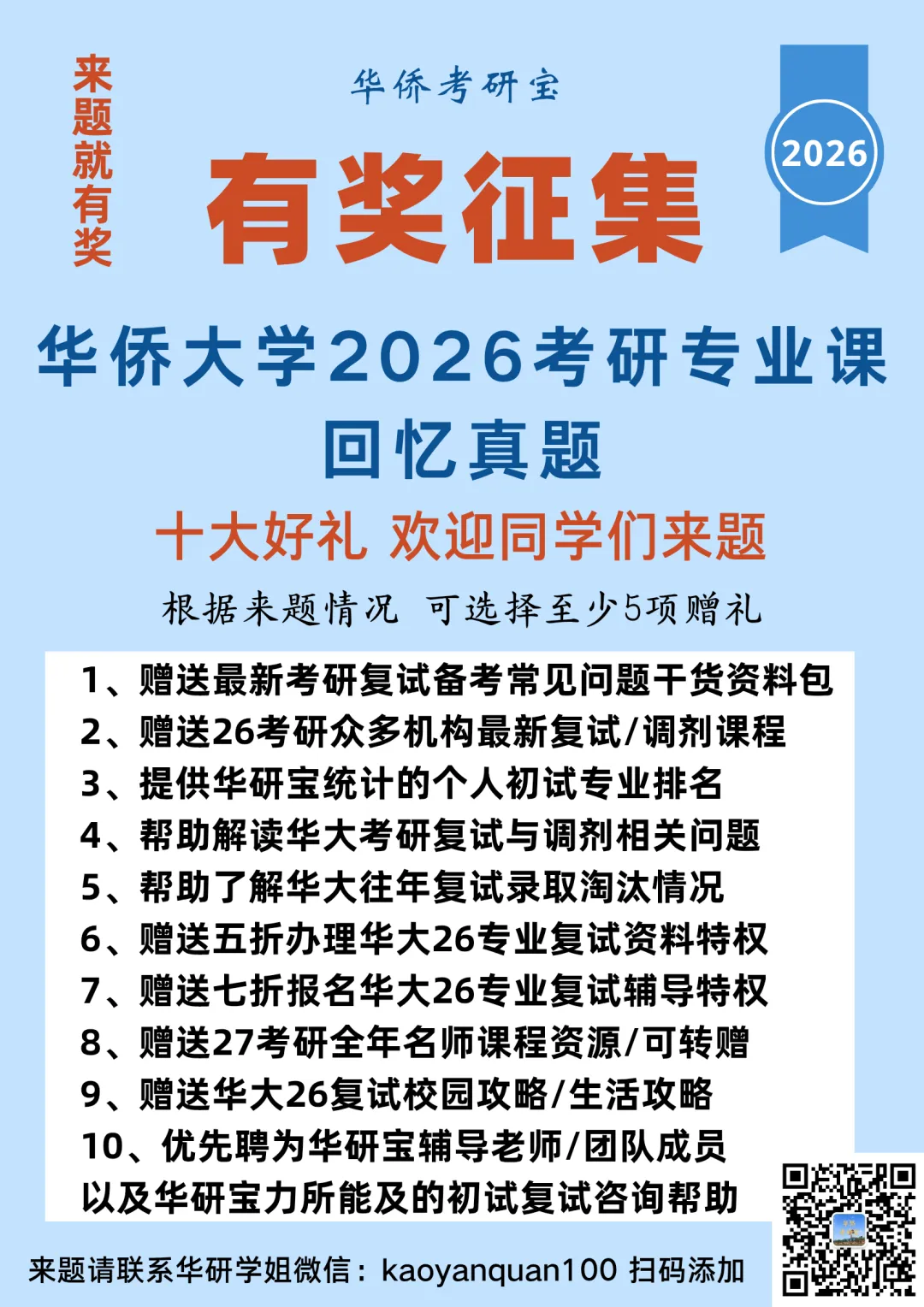 对于回忆真题质量非常好、完整度非常高的同学,除了以上奖励,特别再赠送【26考研复试系统特训班】各专业赠送2个免费名额。(以25考研为例)初试结束后,参与有奖征集回忆真题的同学较多,学姐都会一一回复并邀入26奖励群。各科都持续征集,同学们考后如果有回忆整理,不要闲置,都欢迎联系学姐获取奖励或帮助~新添加时请备注:回忆真题