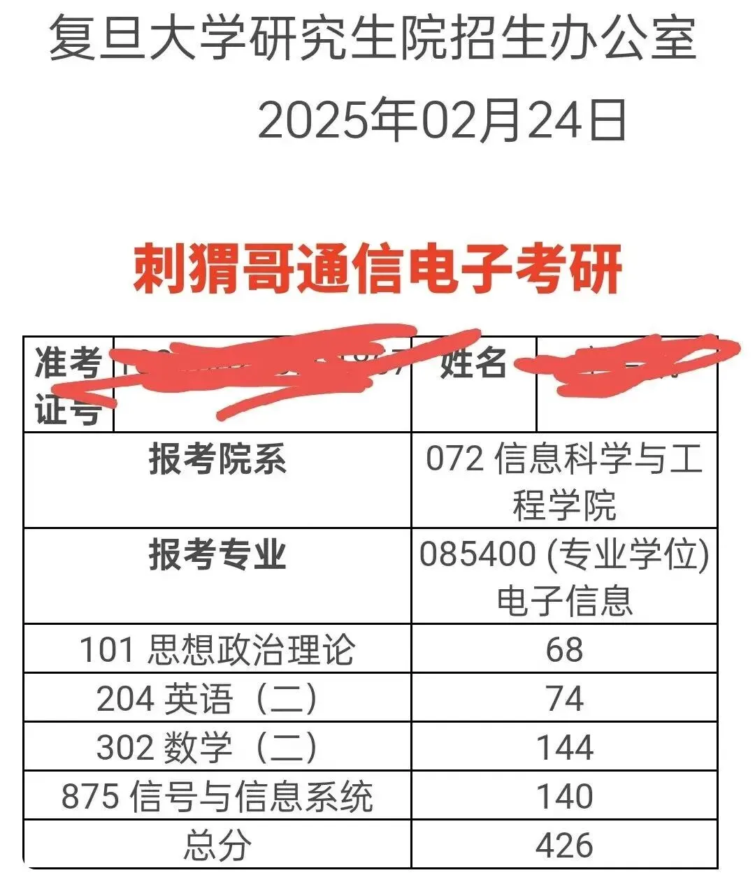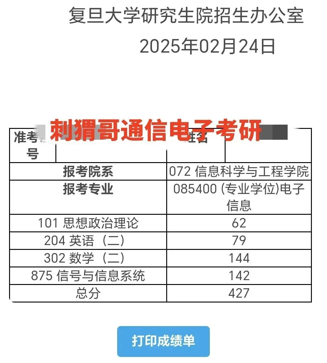 25届复旦875刺猬哥团队学员上岸人数超60人!录取名单里专业课排名前五(含并列)中,有两位学员来自刺猬哥考研团队!专业课140+学员12位,130+分段38学员位。即便有同学复试阶段才加入,也凭借团队辅导强势逆袭,成功跻身录取名单!每年辅导,学长薯条哥都会亲自动笔拆解875真题,精准把握考察重点与命题方向,全心全意为同学们考研之路保驾护航!你只管全力以赴,剩下的都交给复旦875刺猬哥考研团队!