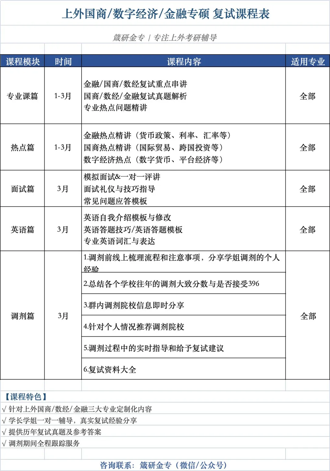 复试阶段(2025.2-4月)我们会分成两个批次。进入复试名单的同学,我们会继续带领大家进行专业课,复试真题,英语,模拟面试的复习。准备调剂的同学,我们会提供一对一调剂咨询服务。