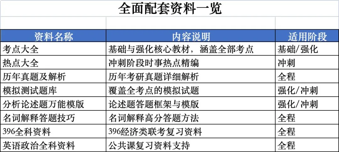 带背阶段(10-11月):21天带背计划,主要是解决大家背诵的问题。今年我们会进行一些优化,对一些难以理解的知识点进行调整。(背诵资料:高分背诵)冲刺阶段(11-12月):我们会进行热点,模拟卷和真题的训练,带大家查漏补缺,做好实战化的演练。(参考用书,热点大全,真题解析)
