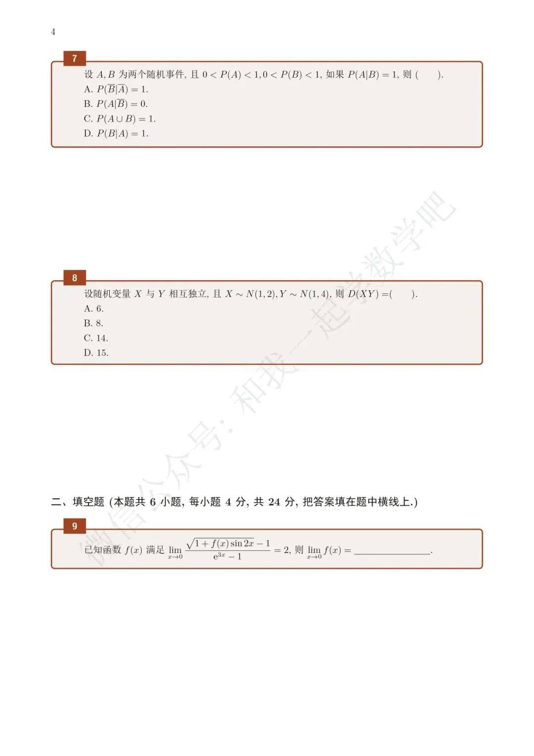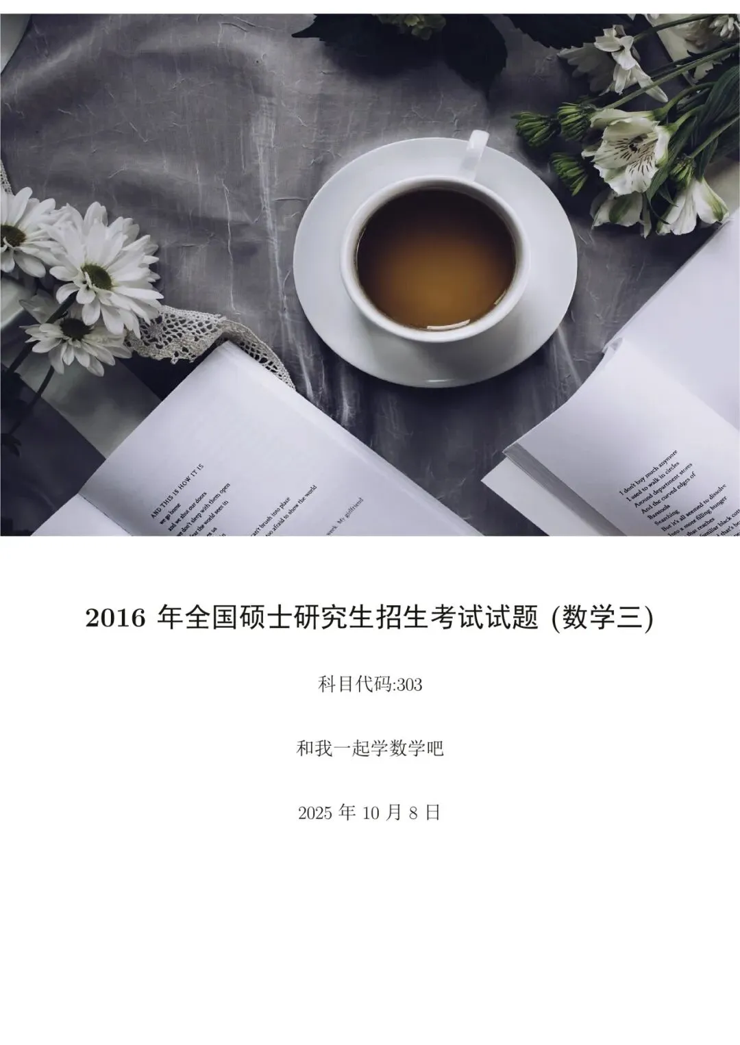 为了方便各位小伙伴们刷题,我重新排版了16年数三的真题,在每道题下面都增加了空白,方便大家写答案,记录相关知识点。