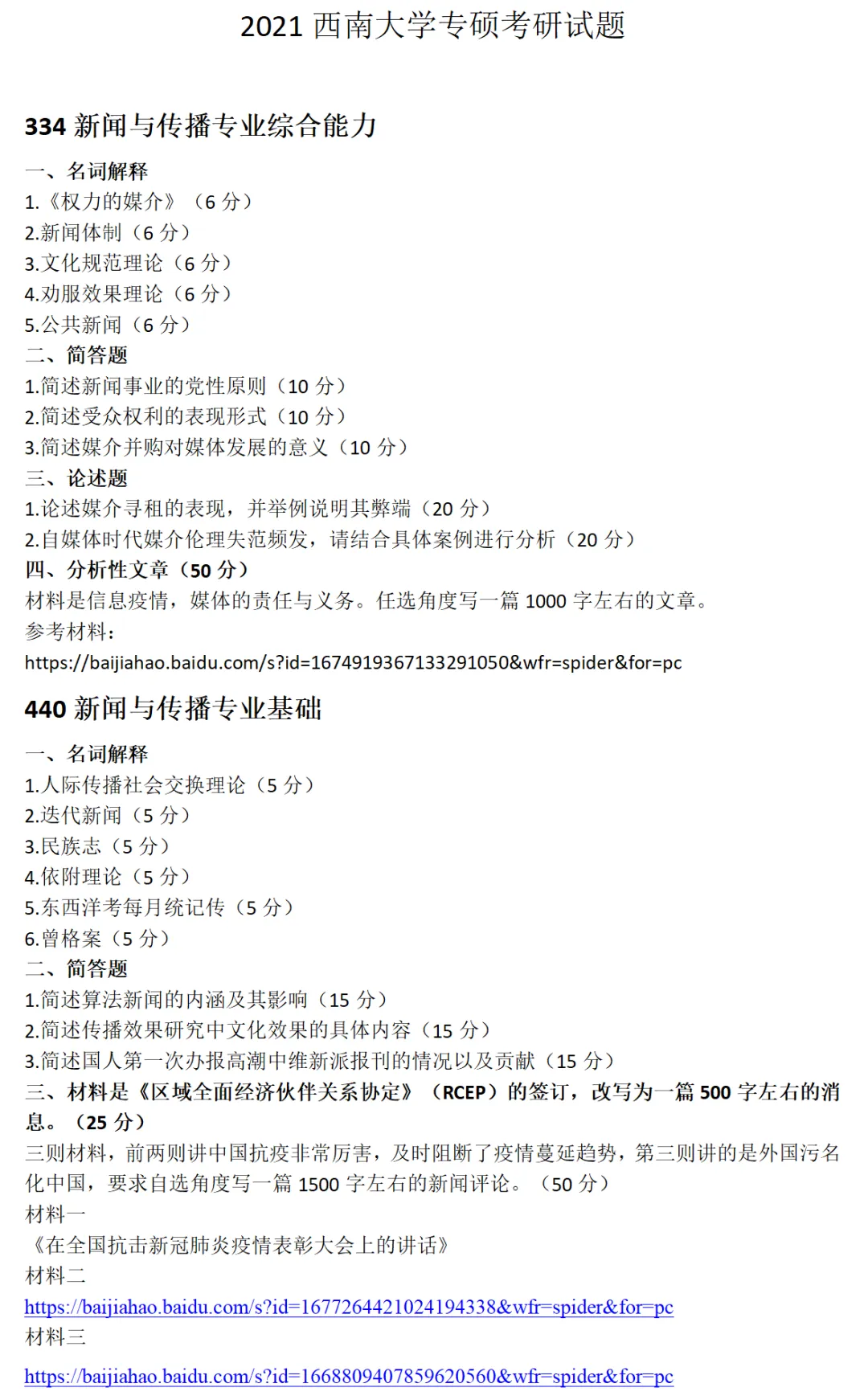 >西南大学新闻与传播考研真题2021