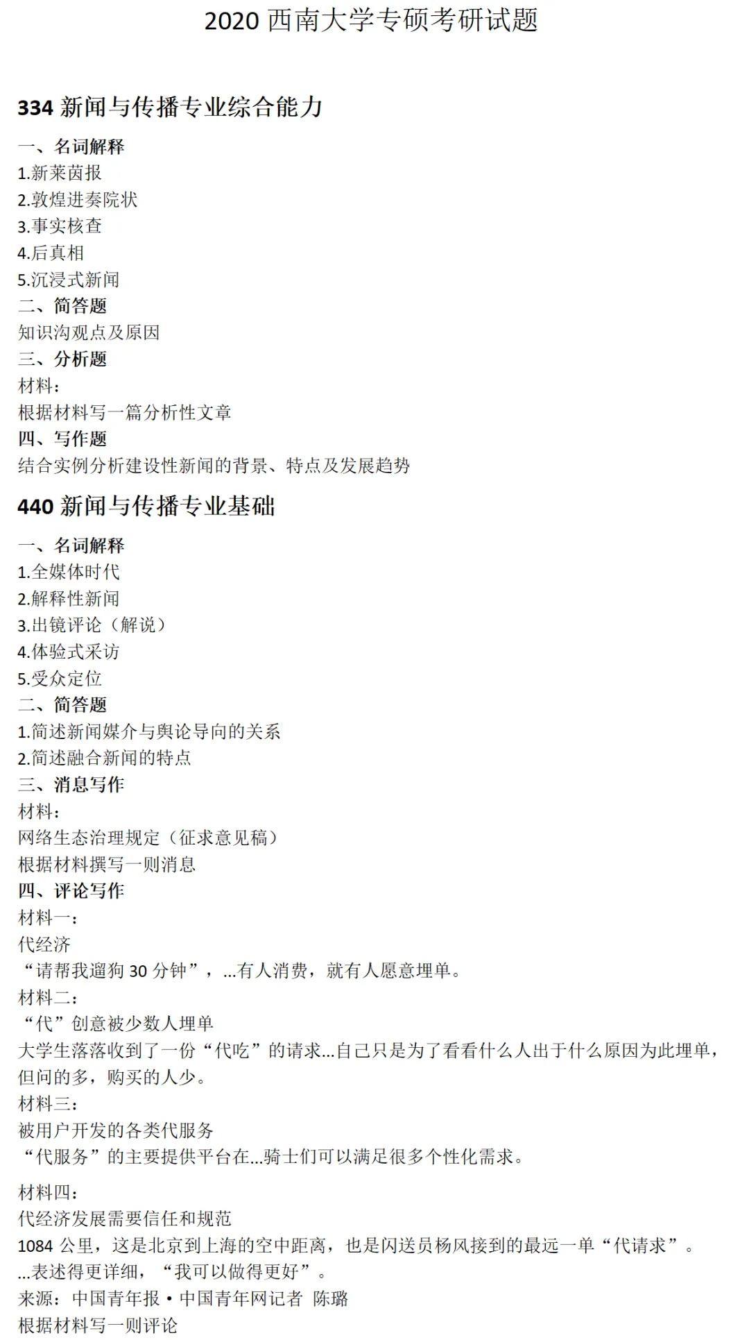 >西南大学新闻与传播考研真题2020