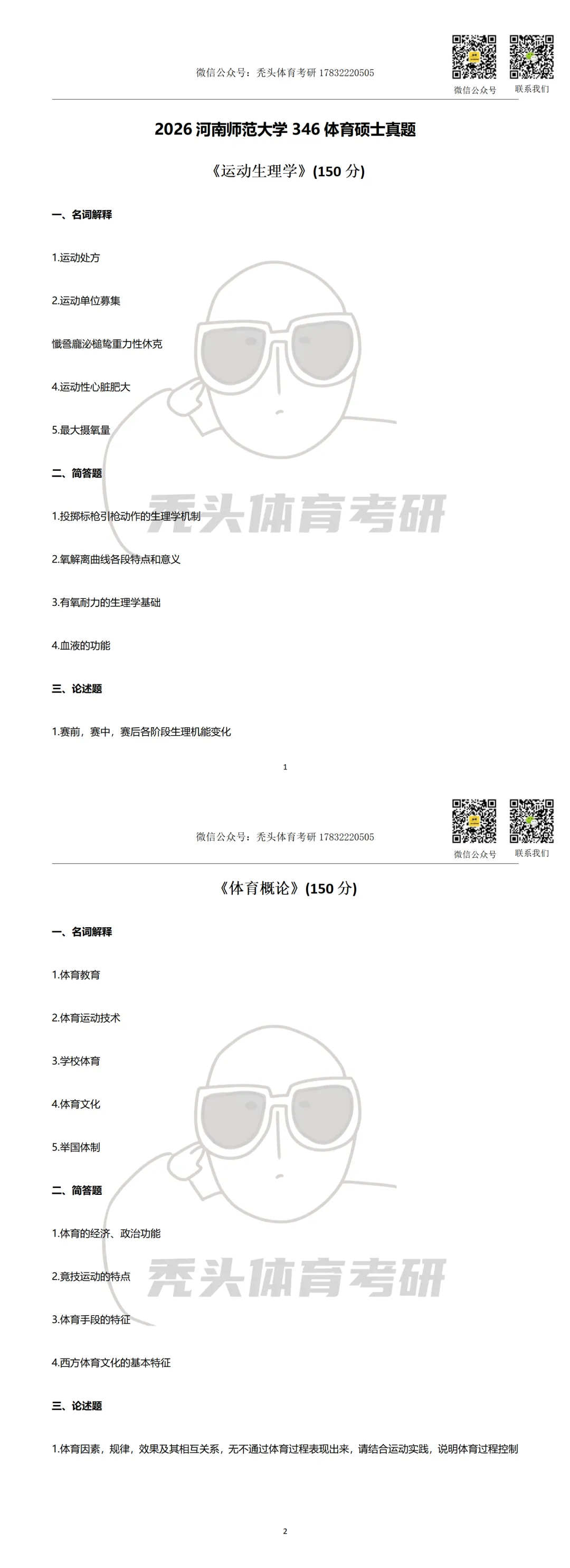>26体育考研真题丨河南师范大学346初试真题(2026)