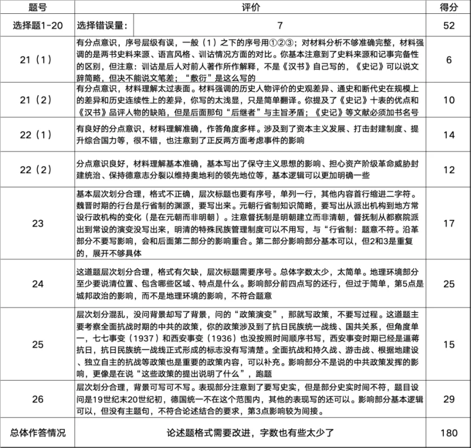 ①强化“学+练”闭环:不同于以往传统的单一授课模式,我们新增了“考生实战”部分,包括论述题实战和全真模拟卷实战。在基础阶段授课完成后,按周期发布论述题练习任务和全套模拟题任务,并提供精批精改和评分💯💯💯,为每位会员考生提供个性化具体答题建议。今年我们为考生设计了专门的练习打卡作业本,可以形成自己的个性化习题册哦。以下为2026全程班会员强化结课模拟作业批阅实例,供各位考生参考: