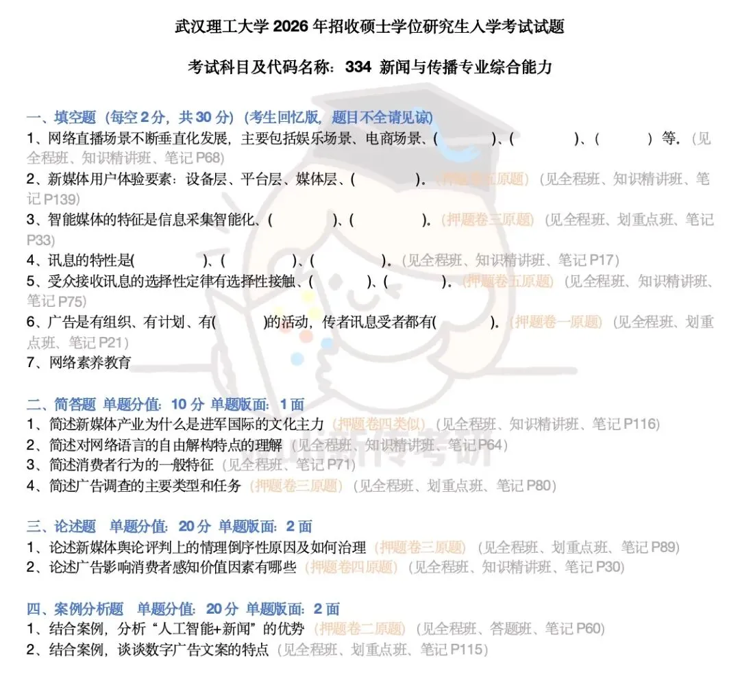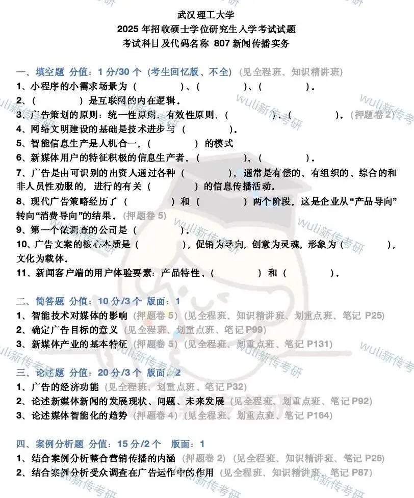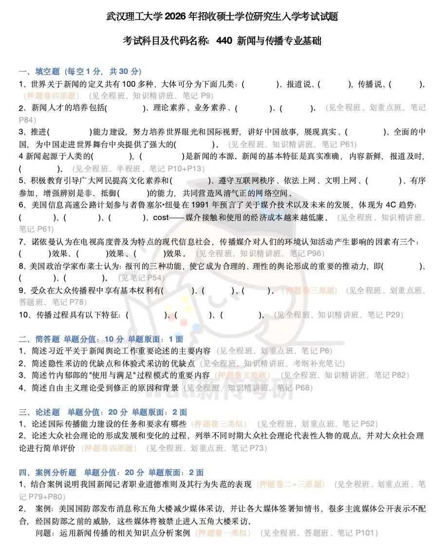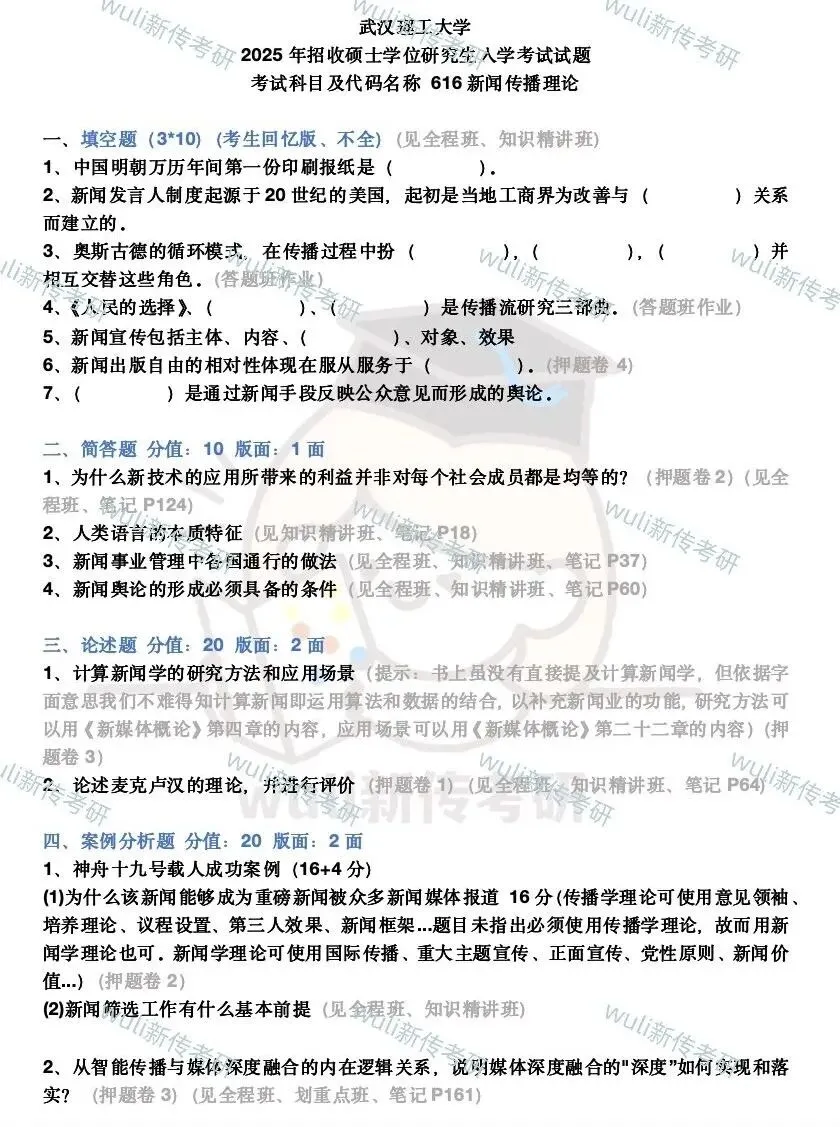 与许多其他高校新闻与传播专业考研不同,武汉理工大学在考研真题中并不涉及实务操作部分,如新闻写作、编辑排版、采访技巧等。这一设置旨在更加专注于考察考生对新闻与传播学基本理论的掌握和理解,而非实际操作能力。因此,备考武汉理工的考生无需在实务方面花费过多时间,而应专注于理论知识的复习和深化。