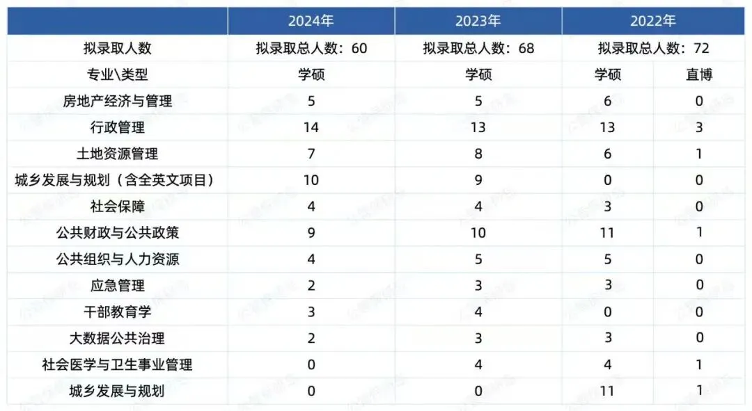 公共管理学作为大类学科,有很多细分专业选择,比较主流的是行管、公财、社保、土管、城规、人力等,各专业之间其实没有泾渭分明的区别,具体选择那个专业报考要考虑难度和自己的兴趣。选择院校时一定要搞清楚学校专业的考试科目,这样在前期可以考虑避开一些专业院校,比如不想考数学或者经济学等。1. 人大公管考研特点