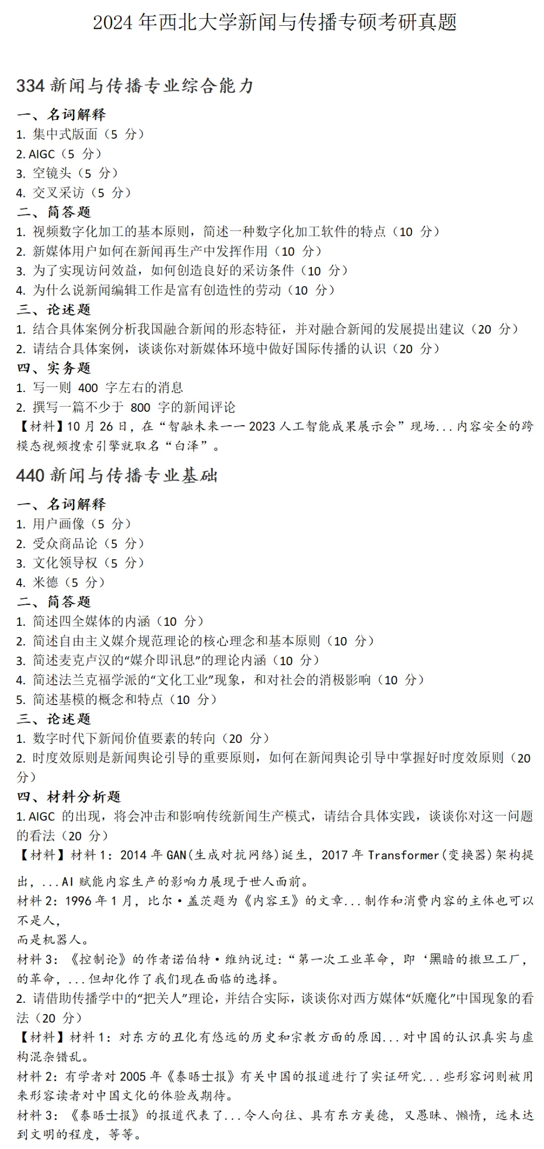 西北大学新闻与传播2016-2025历年考研真题已整理好,可直接获取!
