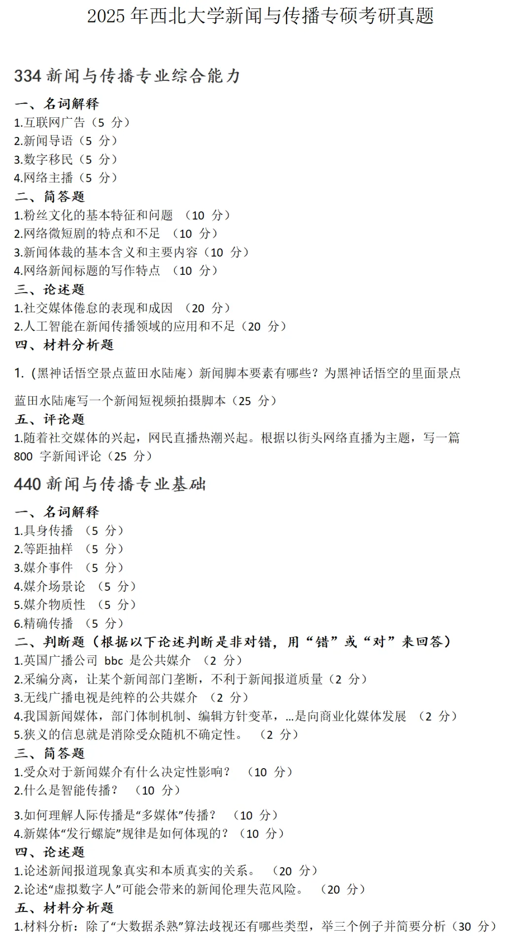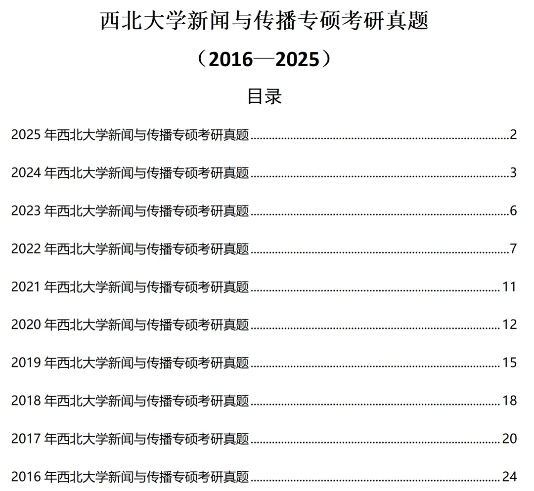 西北大学新闻与传播2016-2025历年考研真题已整理好,可直接获取!