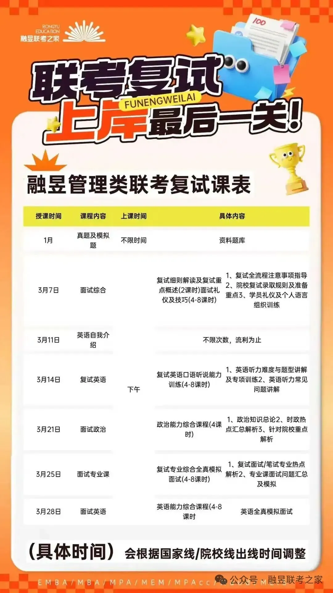 | 以综合面试为主,考察职业素养、管理潜力专业课:MBA侧重管理学基础;MPA侧重公共管理、政策分析 | 梳理个人职业经历与行业认知精读《管理学》(周三多)等经典教材,理论结合实践阐述 |