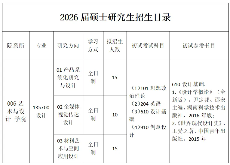 艺术设计专业分为三个方向招生:分别是产品系统化研究与设计、全媒体视觉传达设计、材料艺术与空间应用设计。