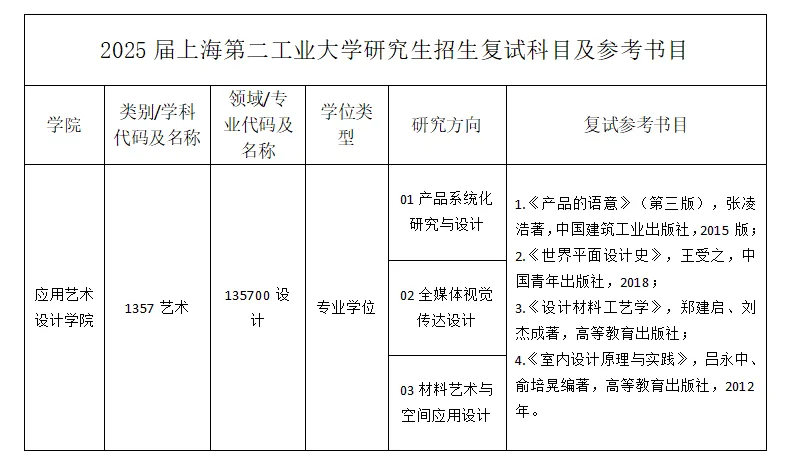 PS:目前上海第二工业大学艺术设计只开设了专硕学位,学硕暂未开始招生。